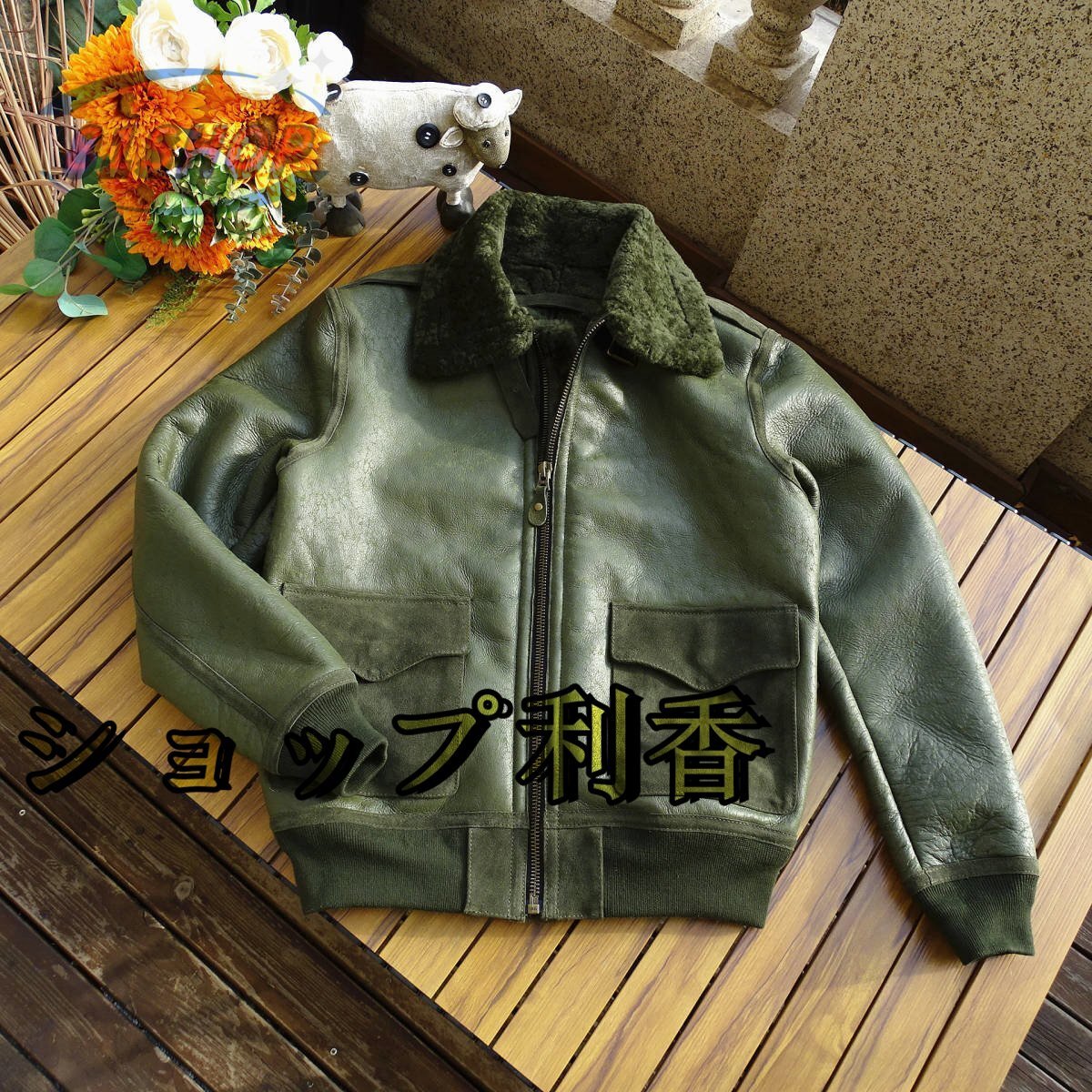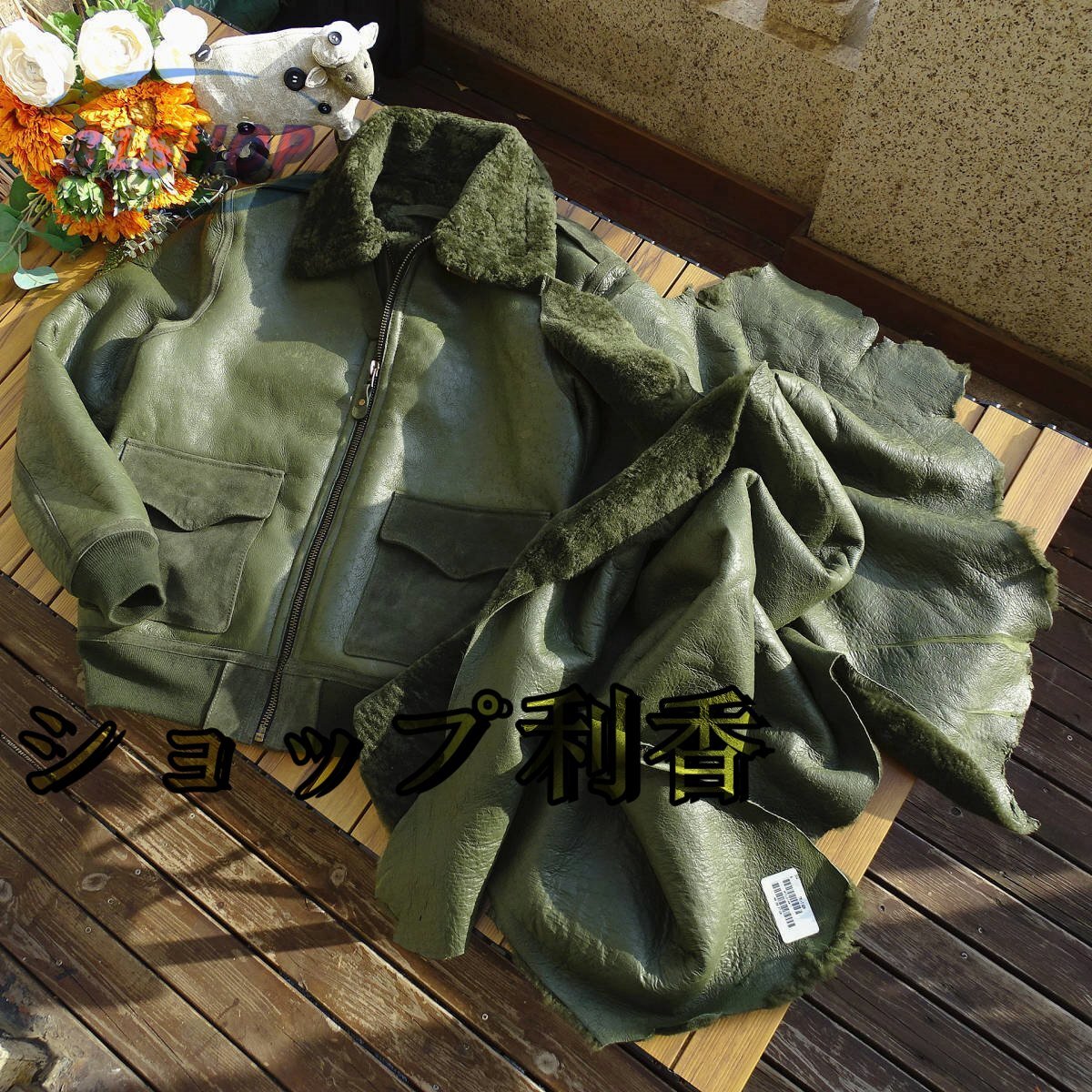 A2フライトジャケット ムートン コート 羊革 毛皮一体 シープスキン 本革 防寒服 ラムレザー 天然革
