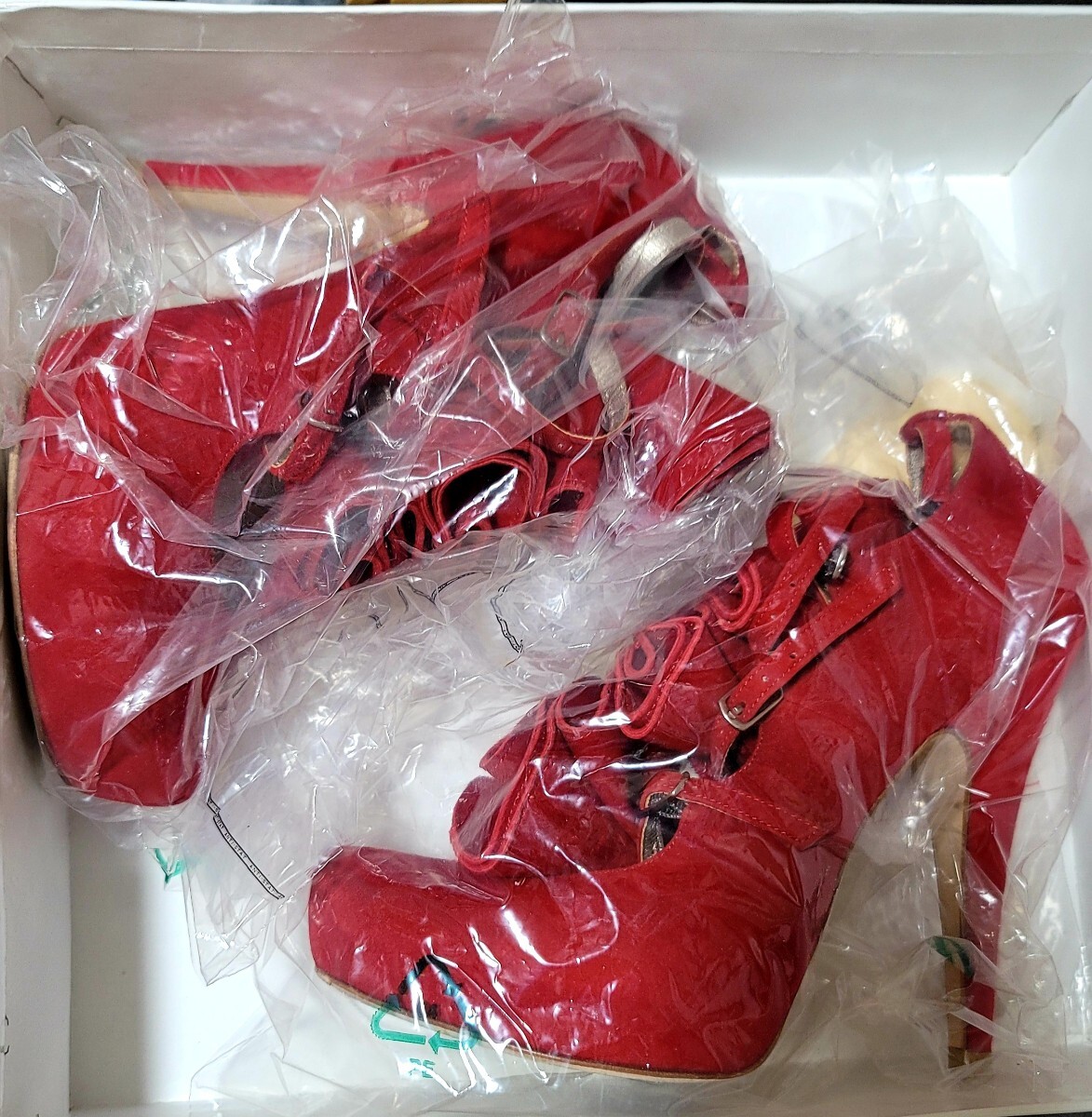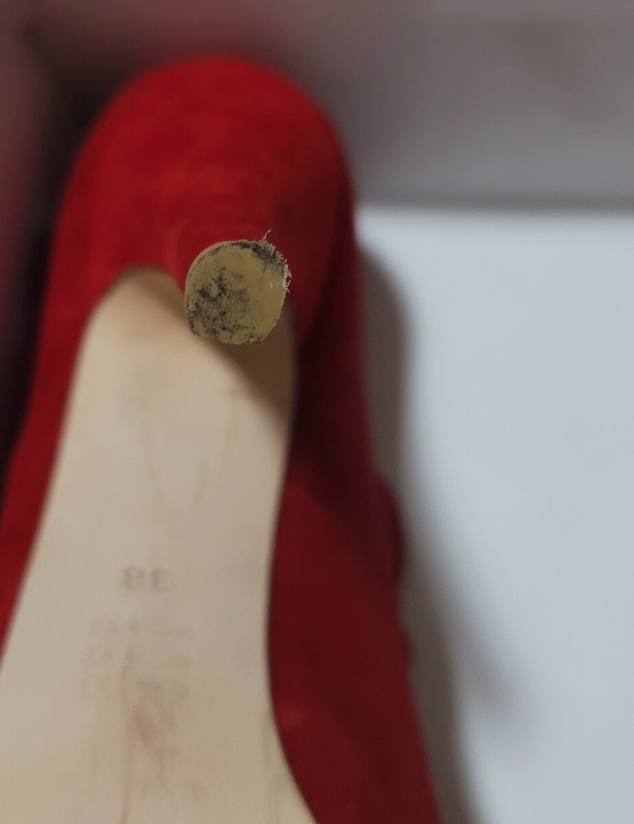箱も靴も全体的に新品同様ですが、転倒した際に靴底とヒール底にキズがついてしまっています。