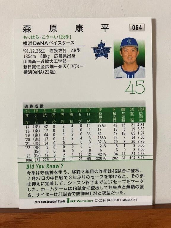 【2024 BBM 1st】064森原康平(横浜DeNAベイスターズ)レギュラーカード※キラカード版
