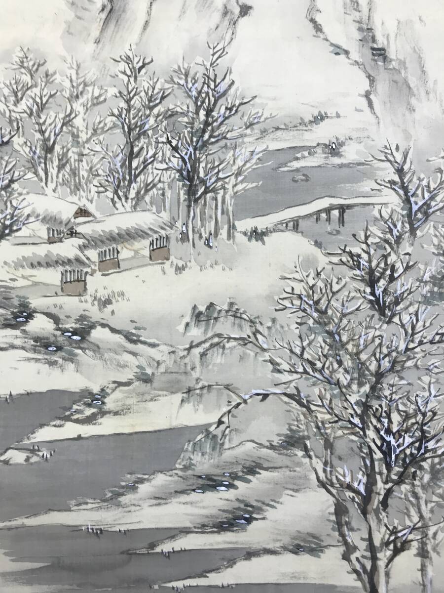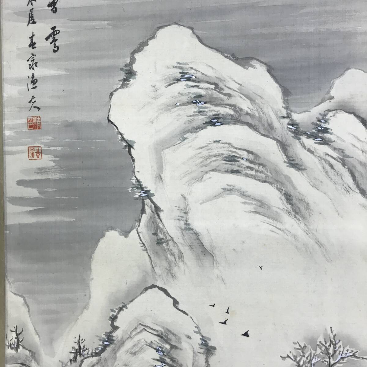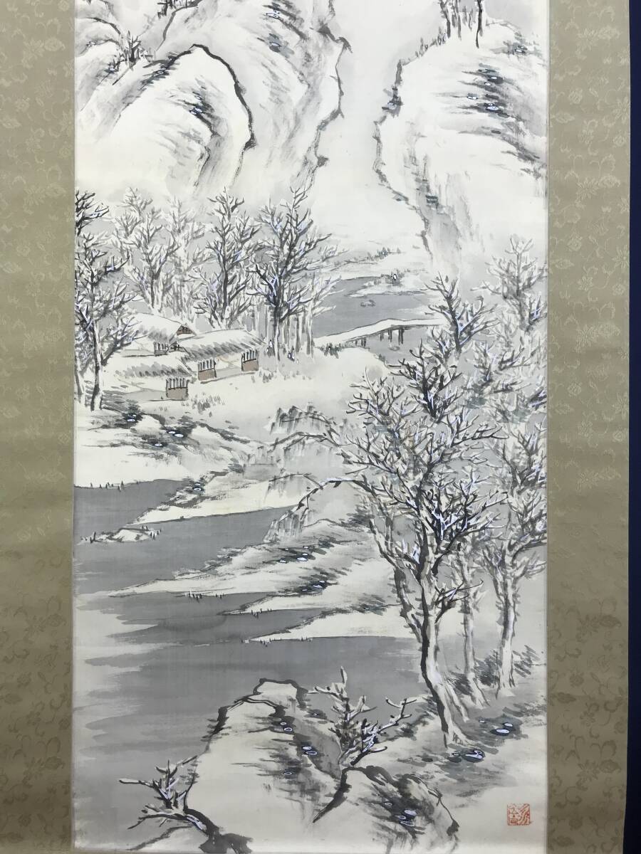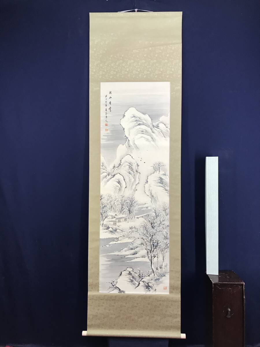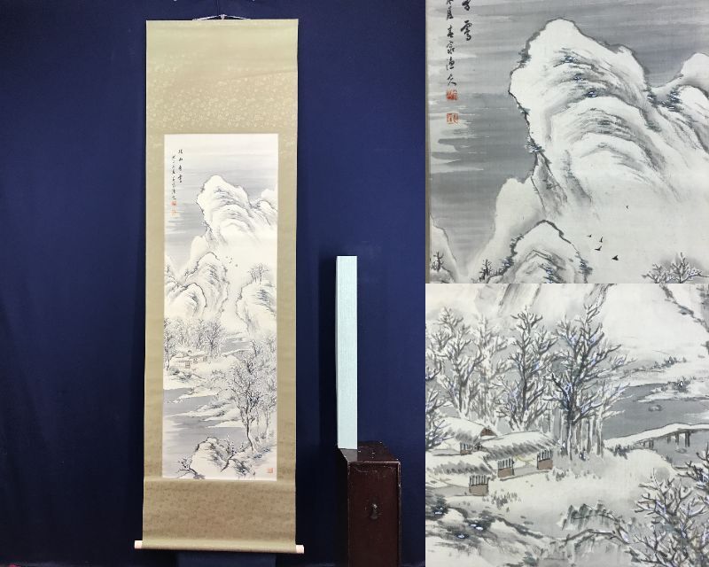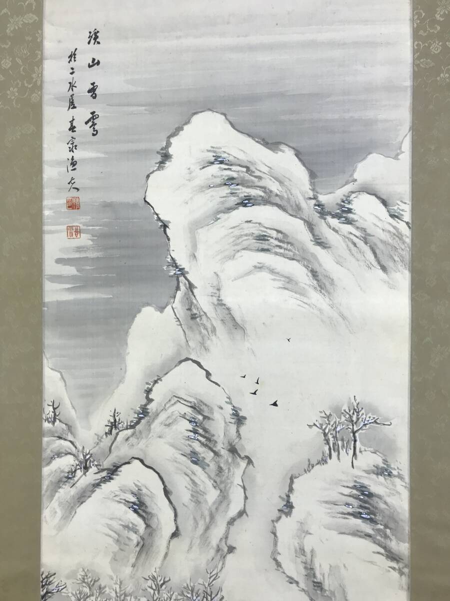 真作/日田春泉/渓山雪景図/山水図/雪景山村図/掛軸☆宝船☆AF-559
