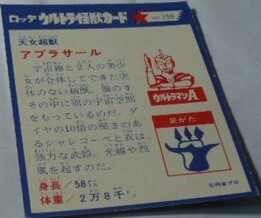 昭和?当時物 レア物 ロッテ ウルトラ怪獣カード159天女超獣アプラサール ウルトラマンA(エース) 円谷プロ トレカ
