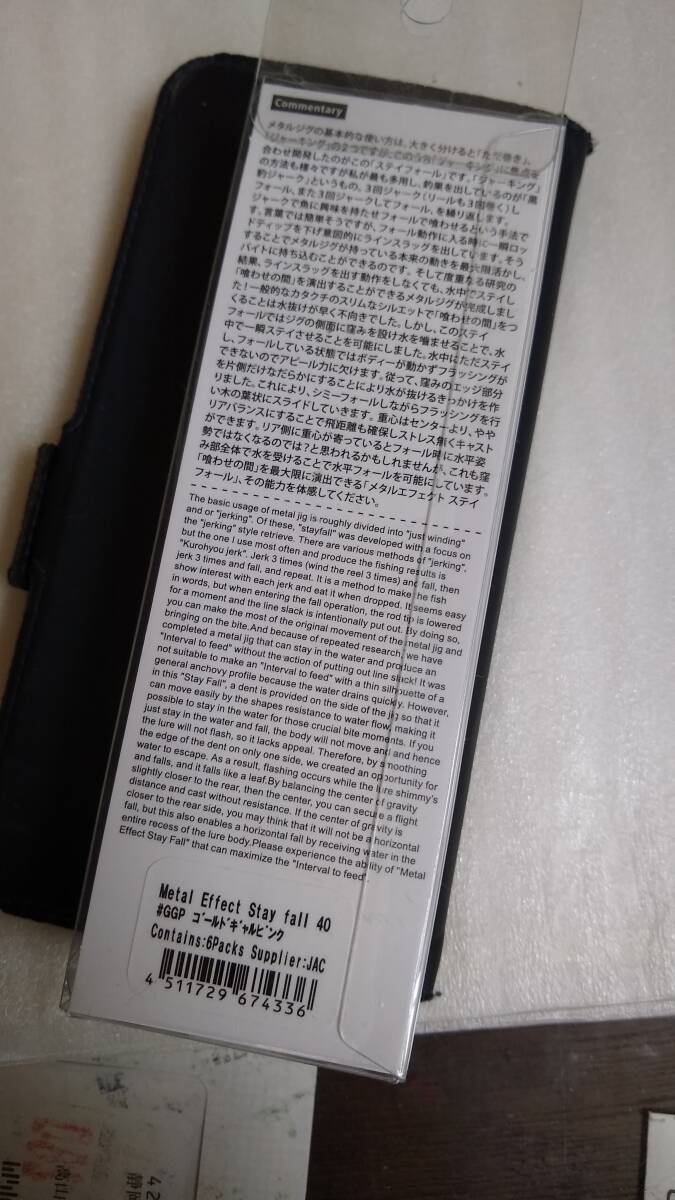 メタルジグの基本的な使い方は、大きく分けると「ただ巻き」、「ジャーキング」の2つですが、このうち「ジャーキング」焦点を合わせて開発したのがこの「ステーイフォール」です。「ジャーキング」の方法も様々ですが私が最も多用し、釣果を出しているのが「黒豹ジャーク」というもの。3回ジャーク(リールも3回巻く)しフォール、また3回ジャークしてフォール、を繰り返します。ジャークで魚に興味を持たせフォールで喰わせるという手法です。言葉では簡単そうですが、フォール動作に入る時に一瞬ロッドティップを下げ意図的にラインスラッグを出しています。そうすることでメタルジグが持っている本来の動きを最大限活かし、バイトに持ち込むことができるのです。そして度重なる研究の結果、ラインスラッグを出す動作をしなくても、水中でステイし「喰わせの間」を演出することができるメタルジグが完成しました!一般的なカタクチのスリムなシルエットで「喰わせの間」をつくることは水抜けが早く不向きでした。しかし、このステイフォールではジグの側面に窪みを設け水を噛ませることで、水中に一瞬ステイさせることを可能にしました。水中にただステイし、フォールしている状態ではボディーが動かずフラッシングができないのでアピール力に欠けます。従って、窪みのエッジ部分を片側だけなだらかにすることにより水が抜けるきっかけを作りました。これにより、シミフォールしながらフラッシングを行い木の葉状にスライドしていきます。重心はセンターより、ややリアバランスにすることで飛距離も確保しストレス無くキャストができます。リア側に重心が寄っているとフォール時に水平姿勢ではなくなるのでは?と思われるかもしれませんが、これも窪み部全体で水を受けることで水平フォールを可能にしています。「喰わせの間」を最大限に演出できる「メタルエフェクト ステイフォール」、その能力を体感してください。