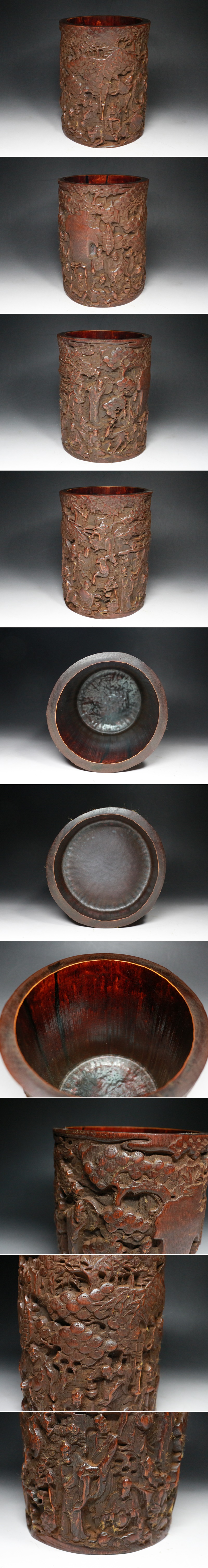 | ■中国古玩■古竹・筆筒・筆立・盛上彫・超細密細工・書道具・唐物・ff033h | ||||||||||||||||||||