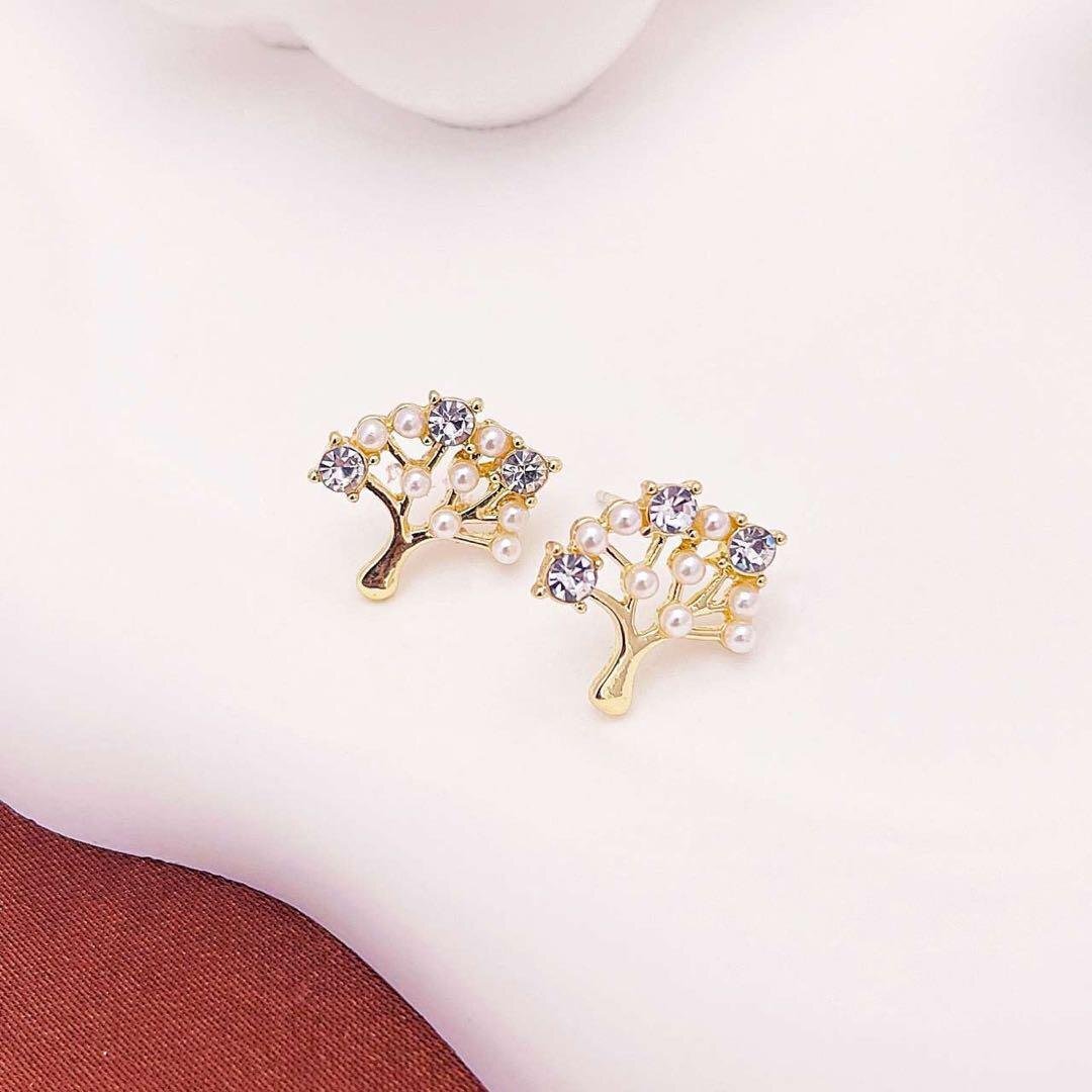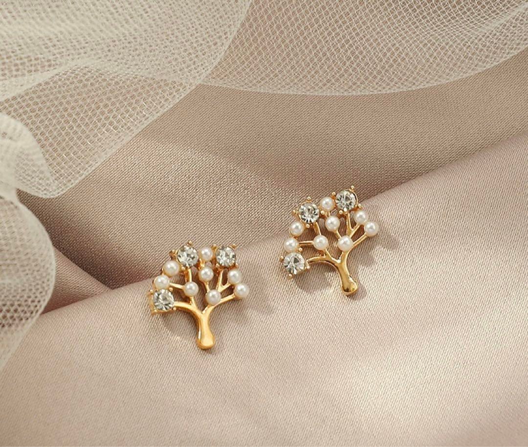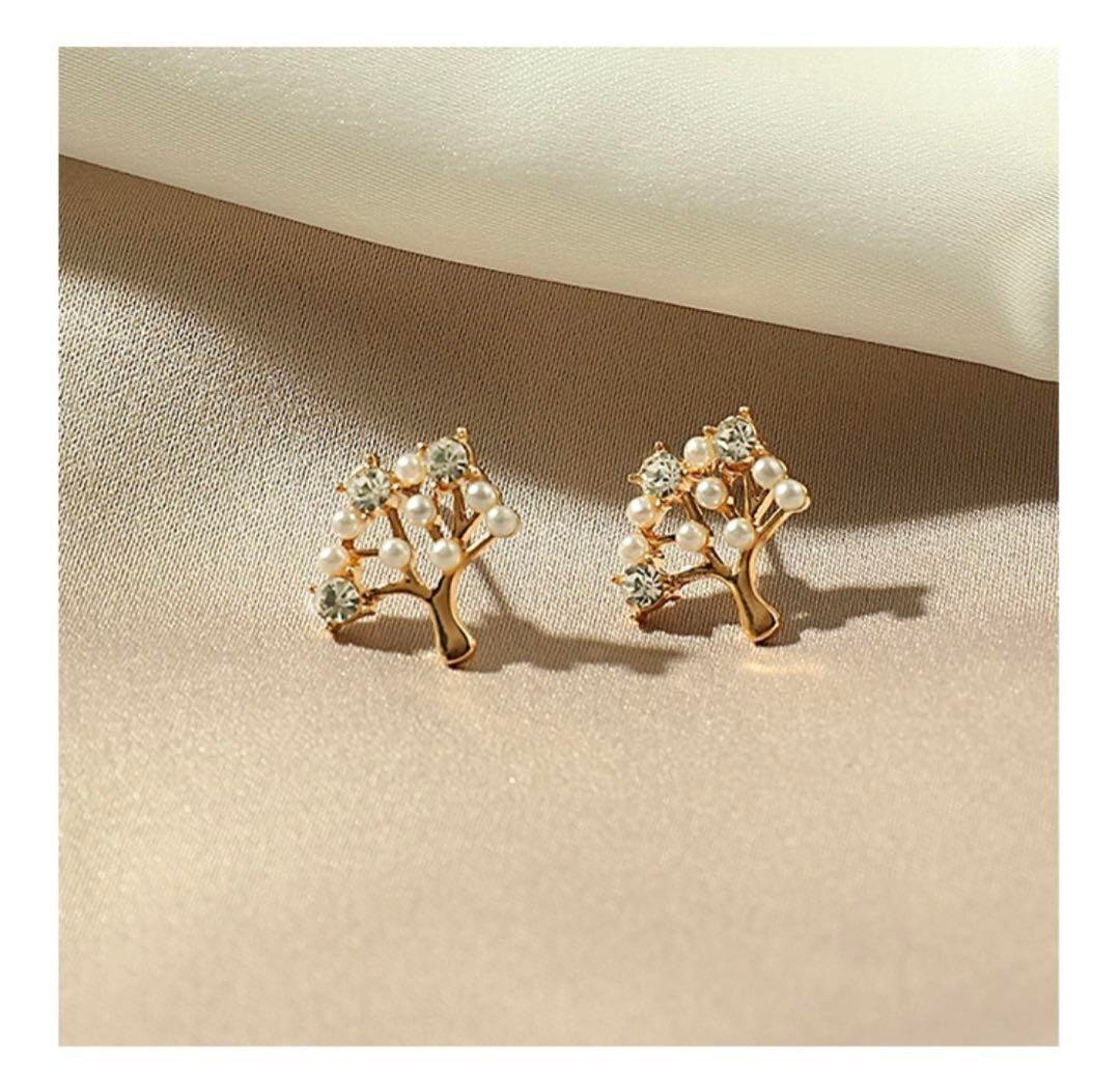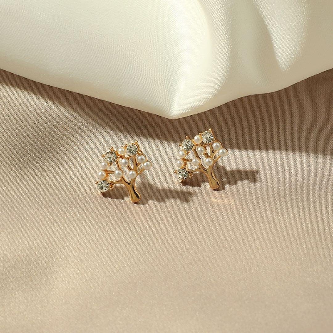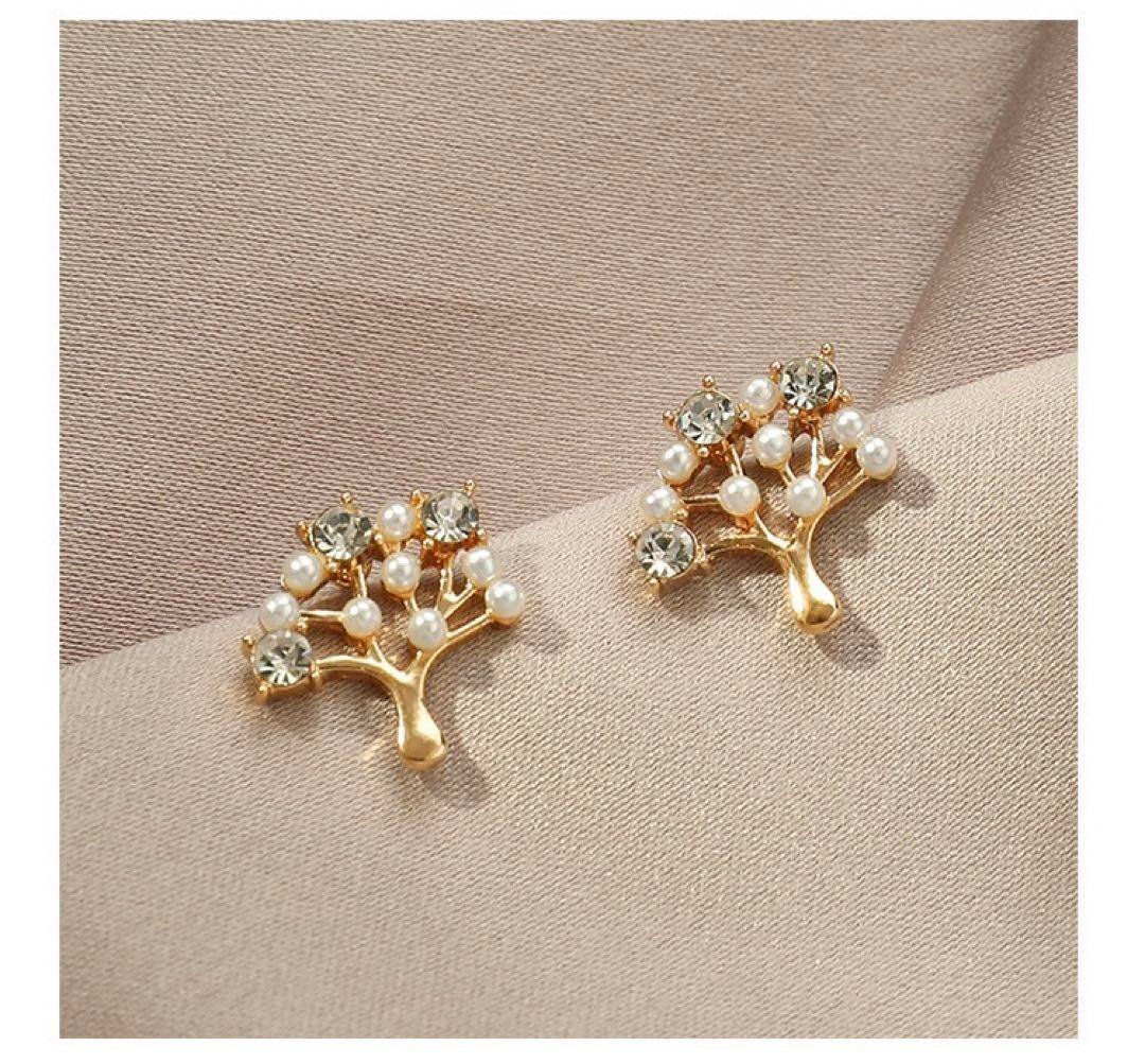 木模様ピアス ラインストーンピアス レディースピアス シルバー925 ピアス アレルギー対応 ins風