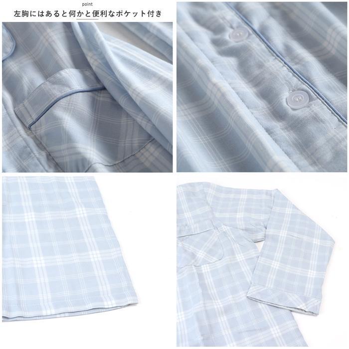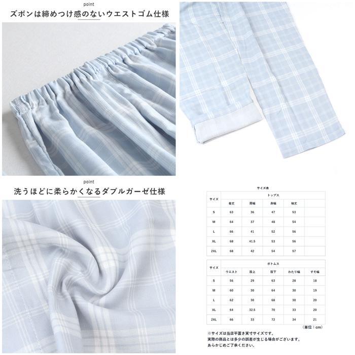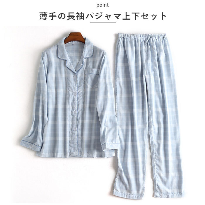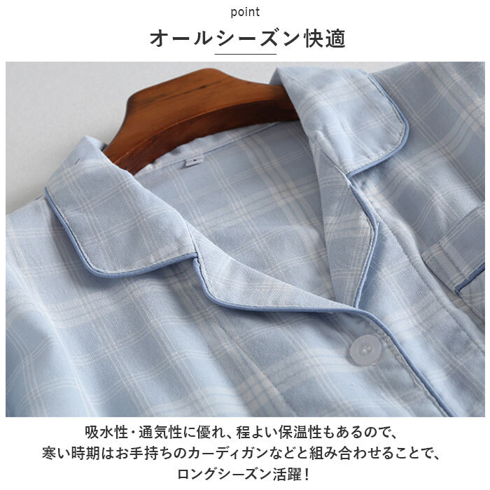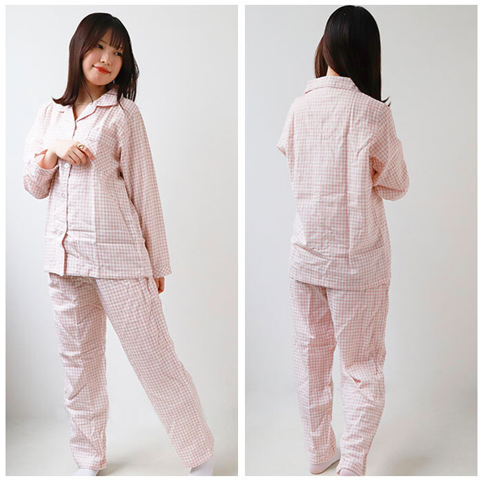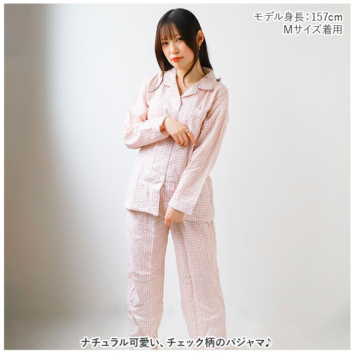 商品説明 | ・・ナチュラル可愛い、チェック柄のパジャマ♪ ・【オールシーズン快適】 ・薄手の長袖パジャマ上下セット。吸水性・通気性に優れ、程よい保温性もあるので、寒い時期はお手持ちのカーディガンなどと組み合わせることで、ロングシーズン活躍! ・【ダブルガーゼ仕様】 ・洗うほどに柔らかくなるダブルガーゼ仕様。 ・【ボタンタイプ】 ・トップスは前開きのボタンタイプ。 ・【ウエストゴム仕様】 ・ズボンは締めつけ感のないウエストゴム仕様。 ・【あると何かと便利】 ・左胸にはあると何かと便利なポケット付き。 ・【お家でのリラックスタイムに】 ・ゆったりとしたシルエットで就寝時のパジャマとしてはもちろん、お家でのリラックスタイムにぴったり。 |