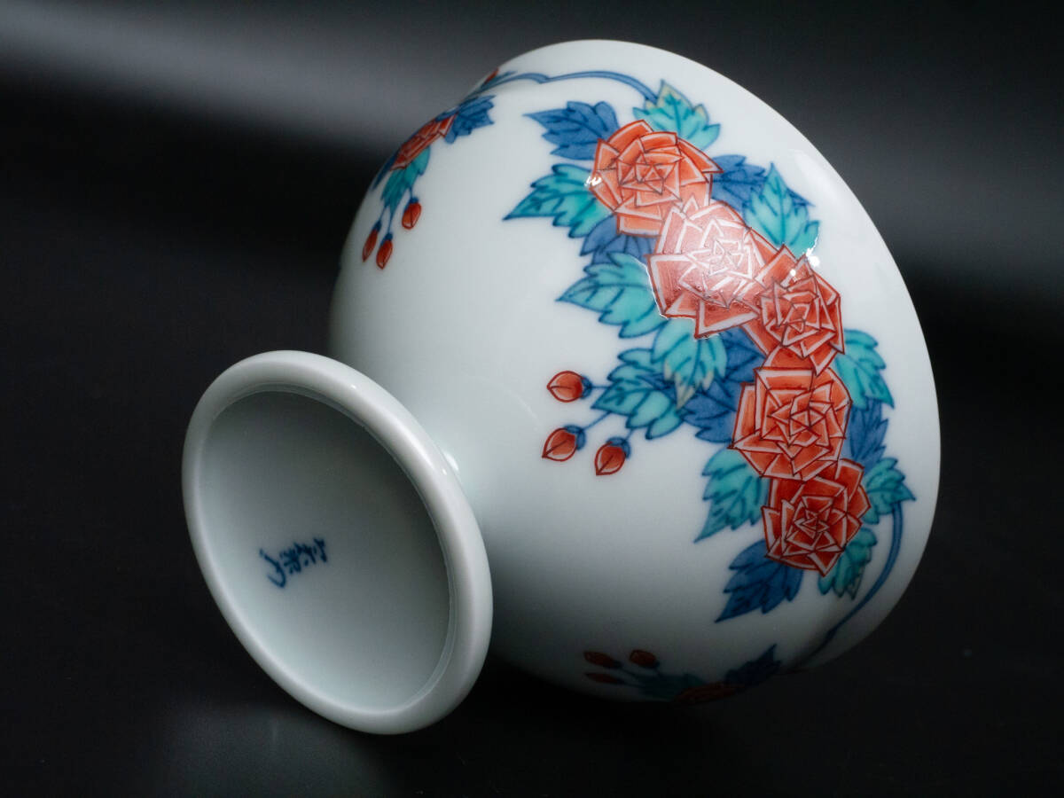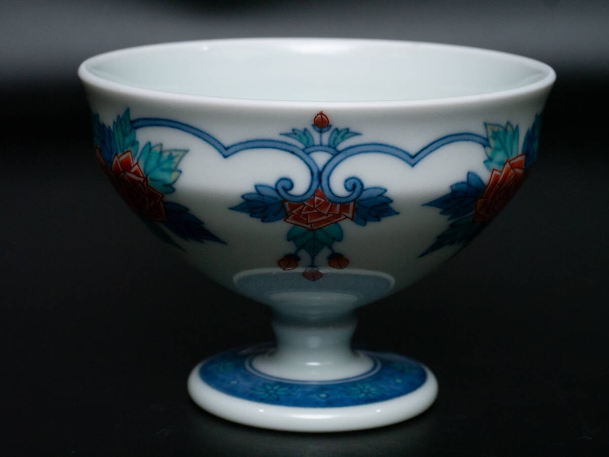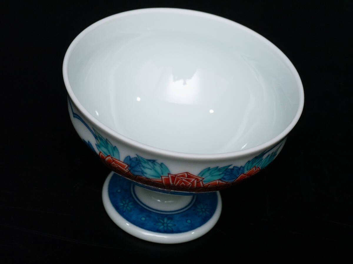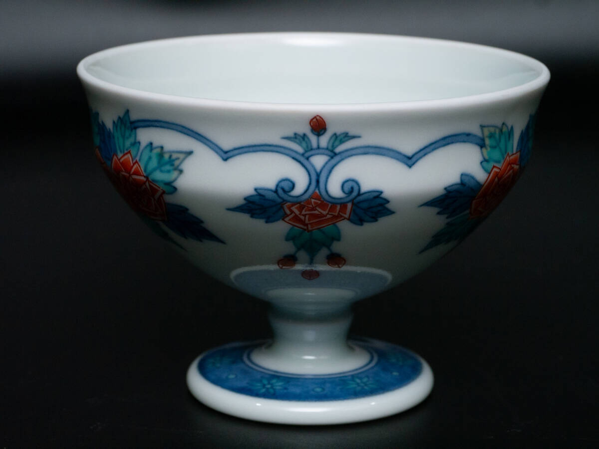 【値下げ交渉有り】 人間国宝 今泉今右衛門 本人作 色鍋島 バラ 薔薇文 高杯 盃 カップ 五客 化粧箱