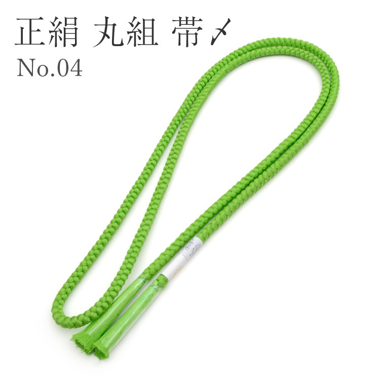 ☆着物タウン☆ 帯締め 丸組 正絹 グリーン 緑 No.04 和装小物 obijime-00008
