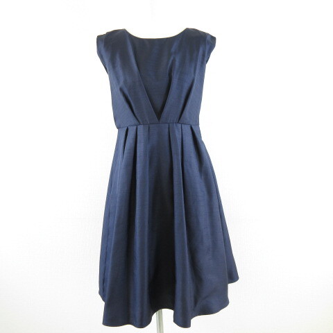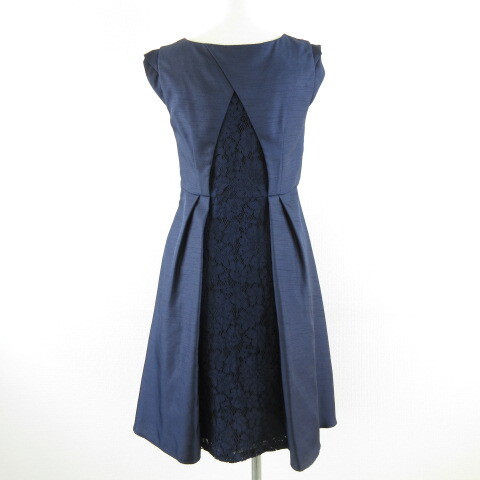 アサクラ ドレス ノースリーブワンピース レース フレア ひざ丈 紺 38 *A94 レディース