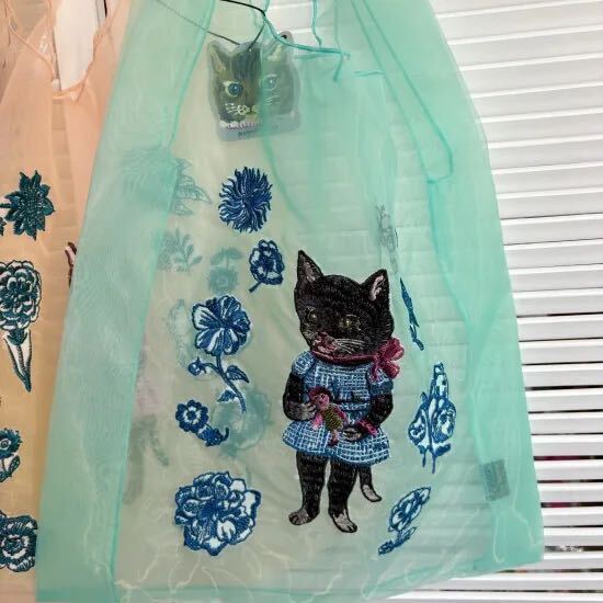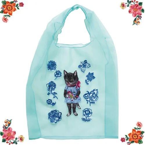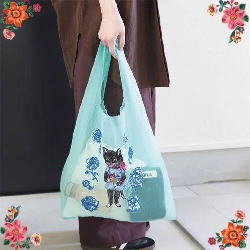 こちらは、ナタリーの代表的キャラクター、黒猫・ミッツィをフィーチャーした、大人かわいいシースルー・エコバッグ。