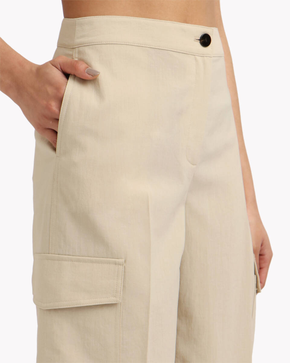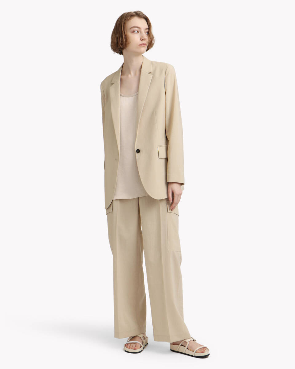 Theory「セオリー」のワイドカーゴパンツ(CRISP POLY/PATCH PKT JEAN W)です(*^_^*) 左右に配したフラップ付きのパッチポケットと、トップステッチディテールがカジュアルな雰囲気もプラスしてくれます♪ センタープレスを施し、幅広い着こなしに合うすっきりしたデザインです♪ 張りのある上質な素材感が魅力的なパンツです!! お色は、ベージュ系の色合いです。 こちらのモニターでは、ほぼ実物どおりの色合いに写っていると思います。 商品番号:01-2206404-322-702 BODY:PATCH PKT JEAN W FABRIC:CRISP POLY 「㈱リンク・セオリー・ジャパン」 |