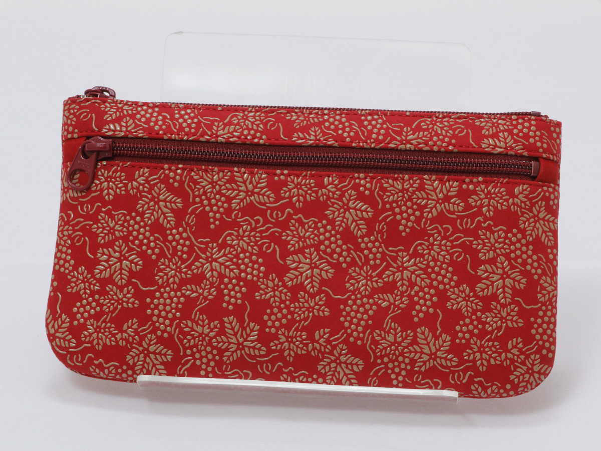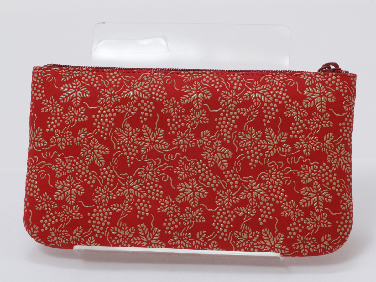 ☆新品・未使用☆ 甲州印伝 印傳屋 No.6 ポーチ No.4407 ぶどう柄 赤×白