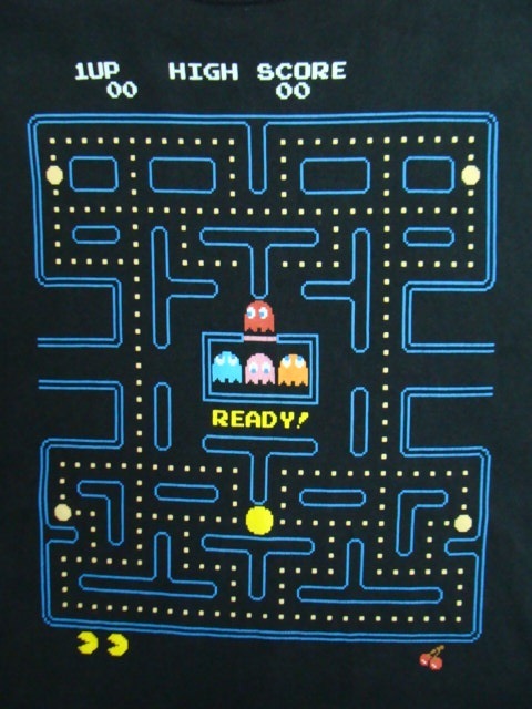 パックマン Pac-Man 半袖Tシャツ 黒 (表記M・かなり大きめ) | |||||||||||