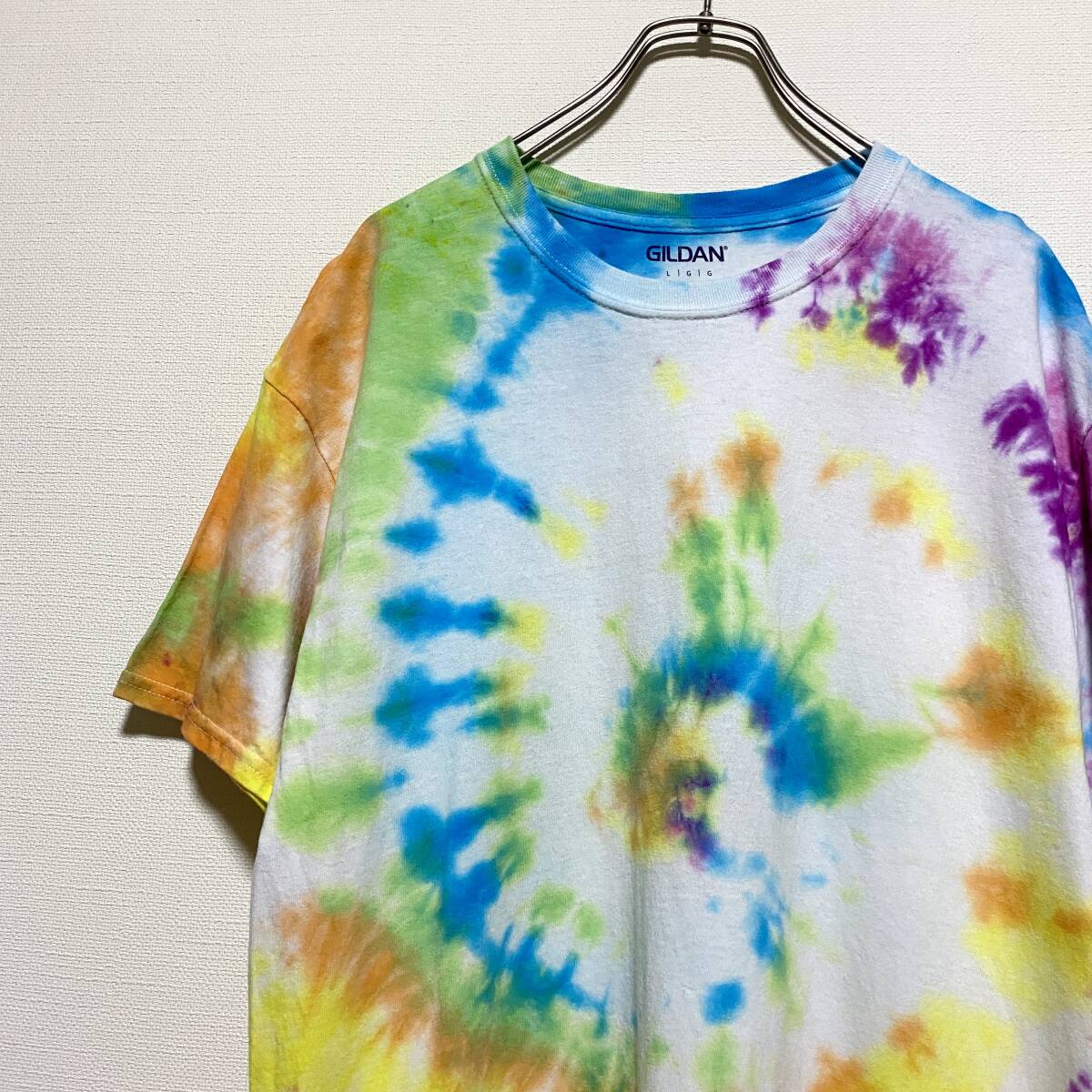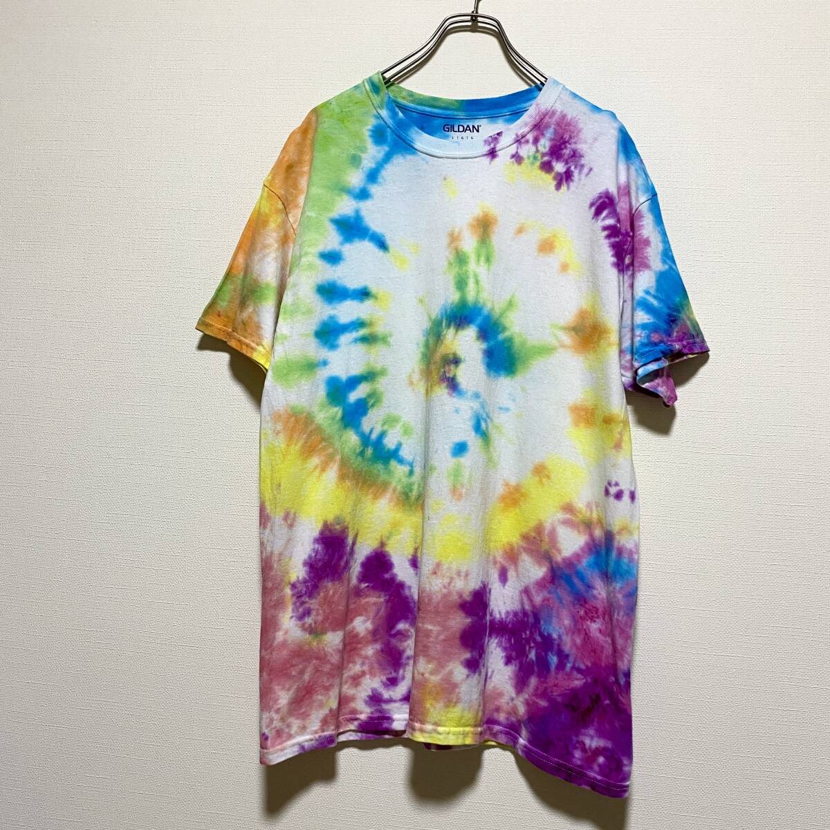 アメリカ古着 タイダイ 半袖 Tシャツ Tie Dye Tee クルーネック マルチカラー カラフル Lサイズ コットン 【I250】