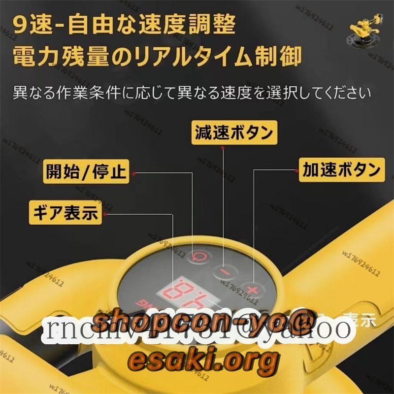 【9速調整可能/デジタル表示】この新製品のアップグレード電動左官マシンは1~9段階の速度調整が可能で、速度を自由に制御でき、さまざまな環境に適しています。小さなディスプレイは、リアルタイムのギア/バッテリーをはっきりと表示できます。より安全に、より便利に。