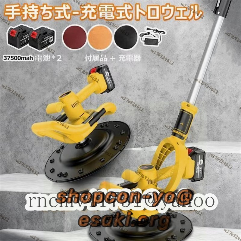 特売!充電式トロウェル 土間 コンクリート研磨機 仕上げツール セメント モルタル 壁ポリッシャー 9速調整電動サンダー延長ポール+電池2個