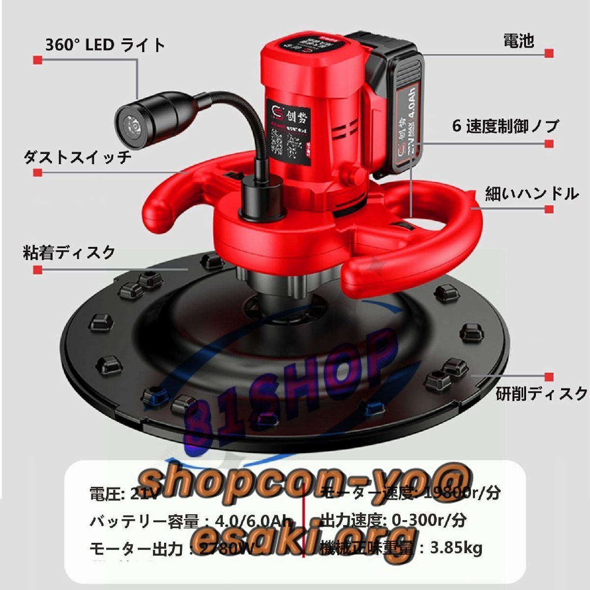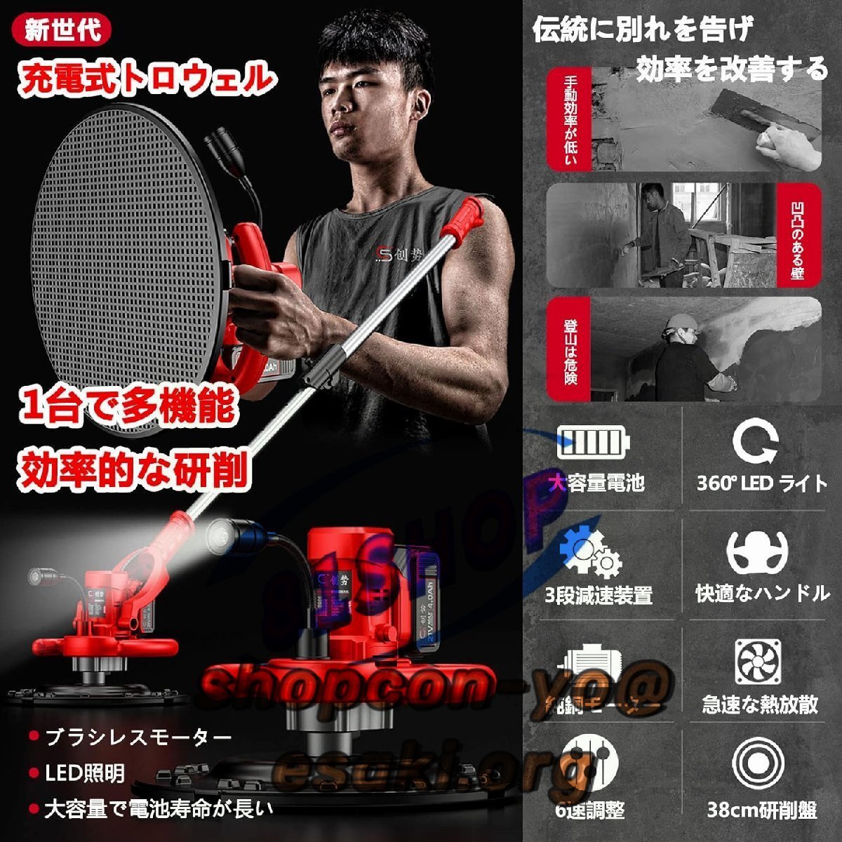 充電式ウォールサンダ モルタル パワートロウェル ライト付き 6段変速 大直径38cm 両手で簡単施工 機械コテ 土間施工 ムラ取り