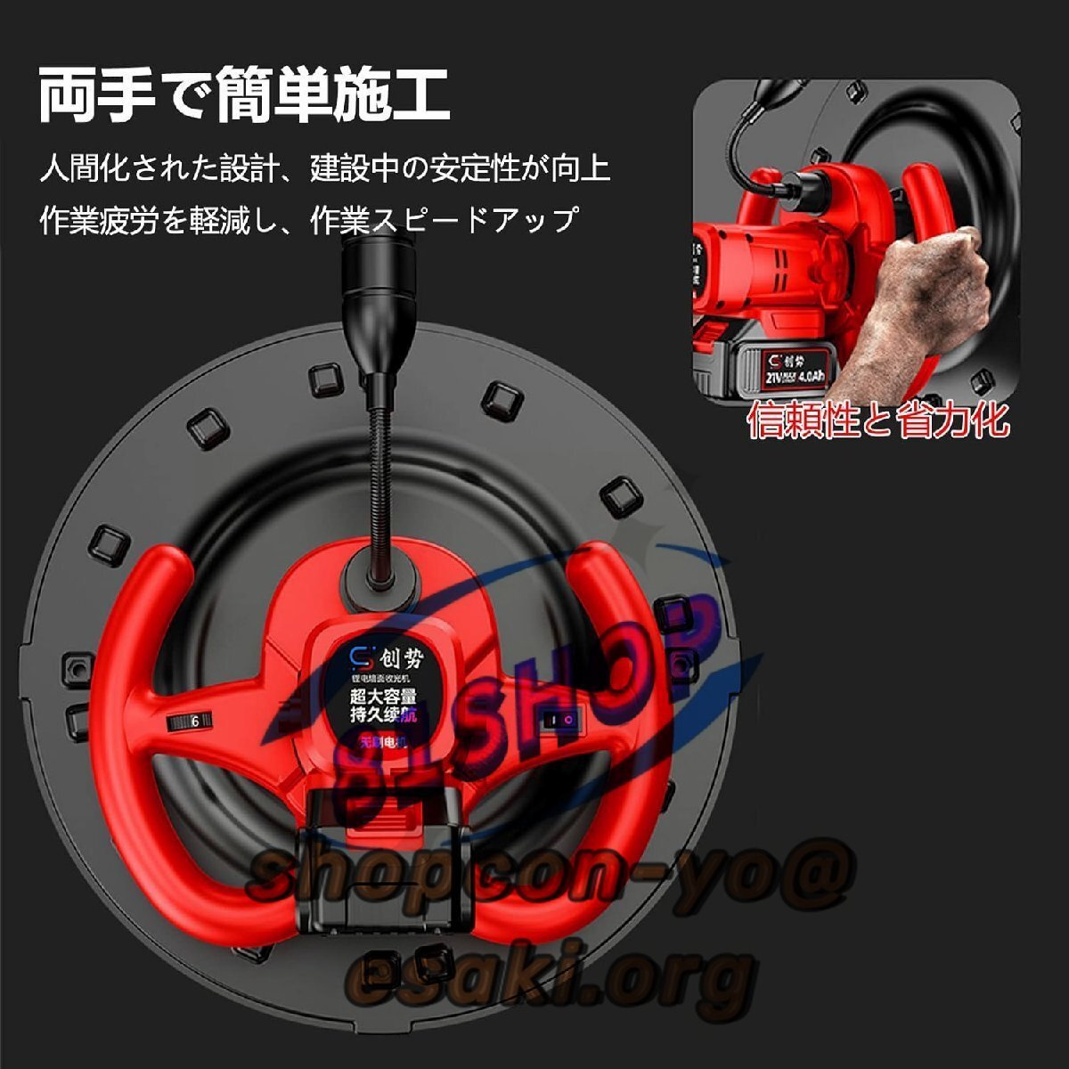 【6速調整可能/照明付き】この電動左官マシンは1~6段階の速度調整が可能で、異なる作業条件に応じて異なる速度を選択し、自由な制御、より安全より便利な構築。360°回転可能で調整可能で、照明範囲が大幅に拡大し、省エネと節電が可能で、暗い環境でも正常に動作します