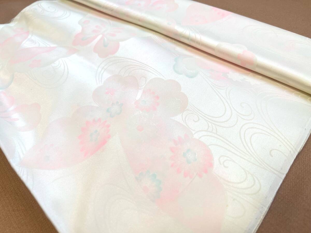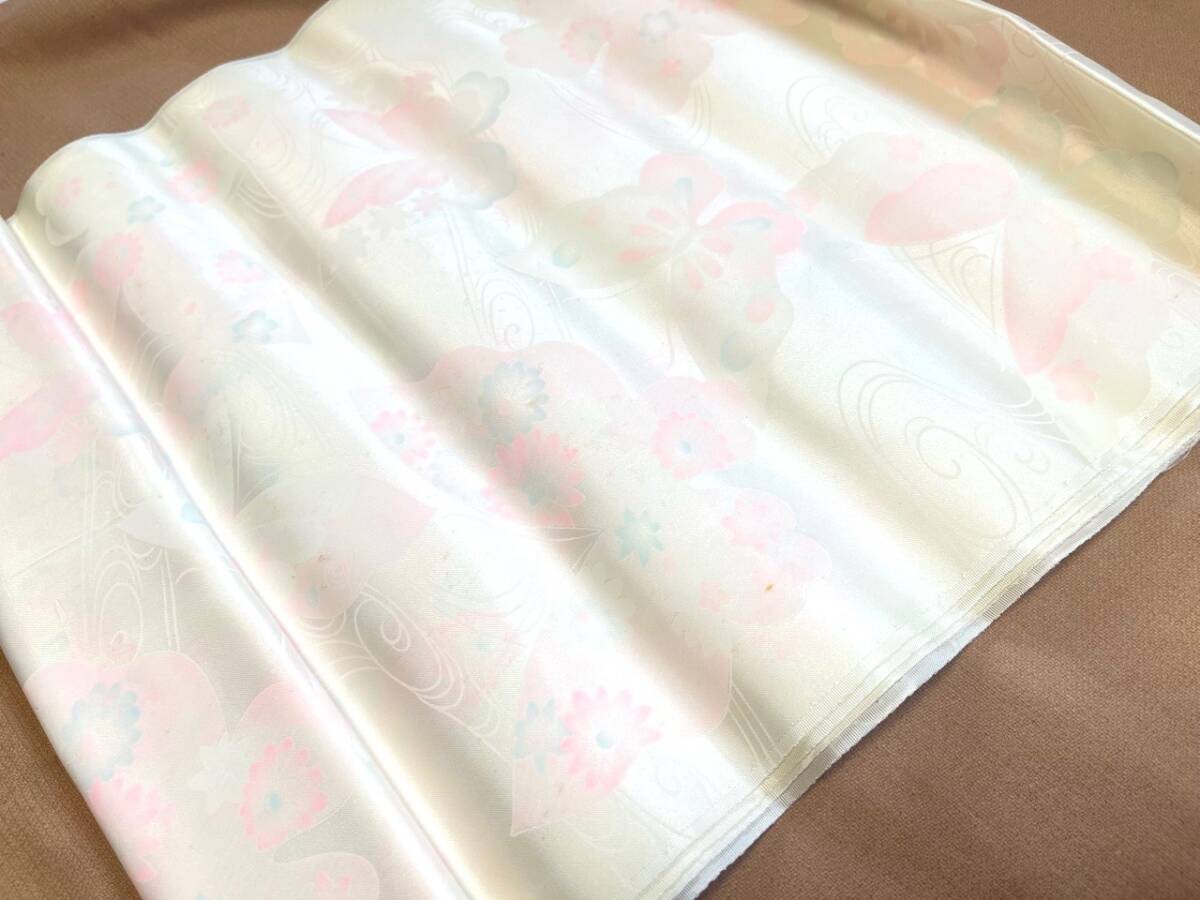 0006★新品訳あり*肩裏地*白*蝶*花*流水*模様*淡い色合い*うらじ*着物*和装*和服*和装小物*レトロ*レディース★