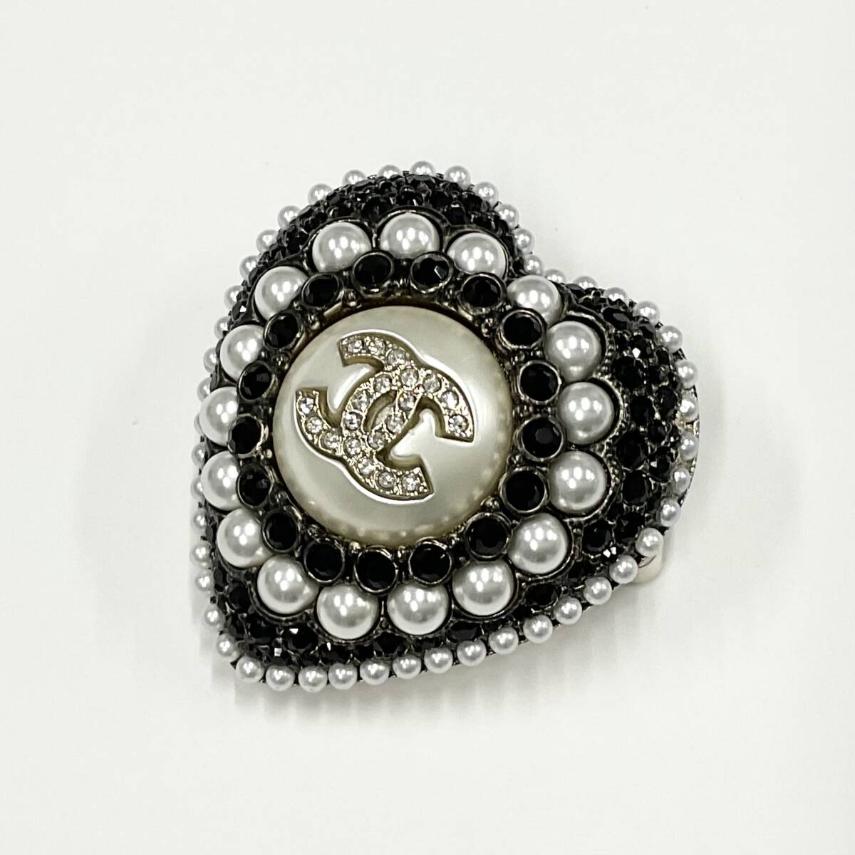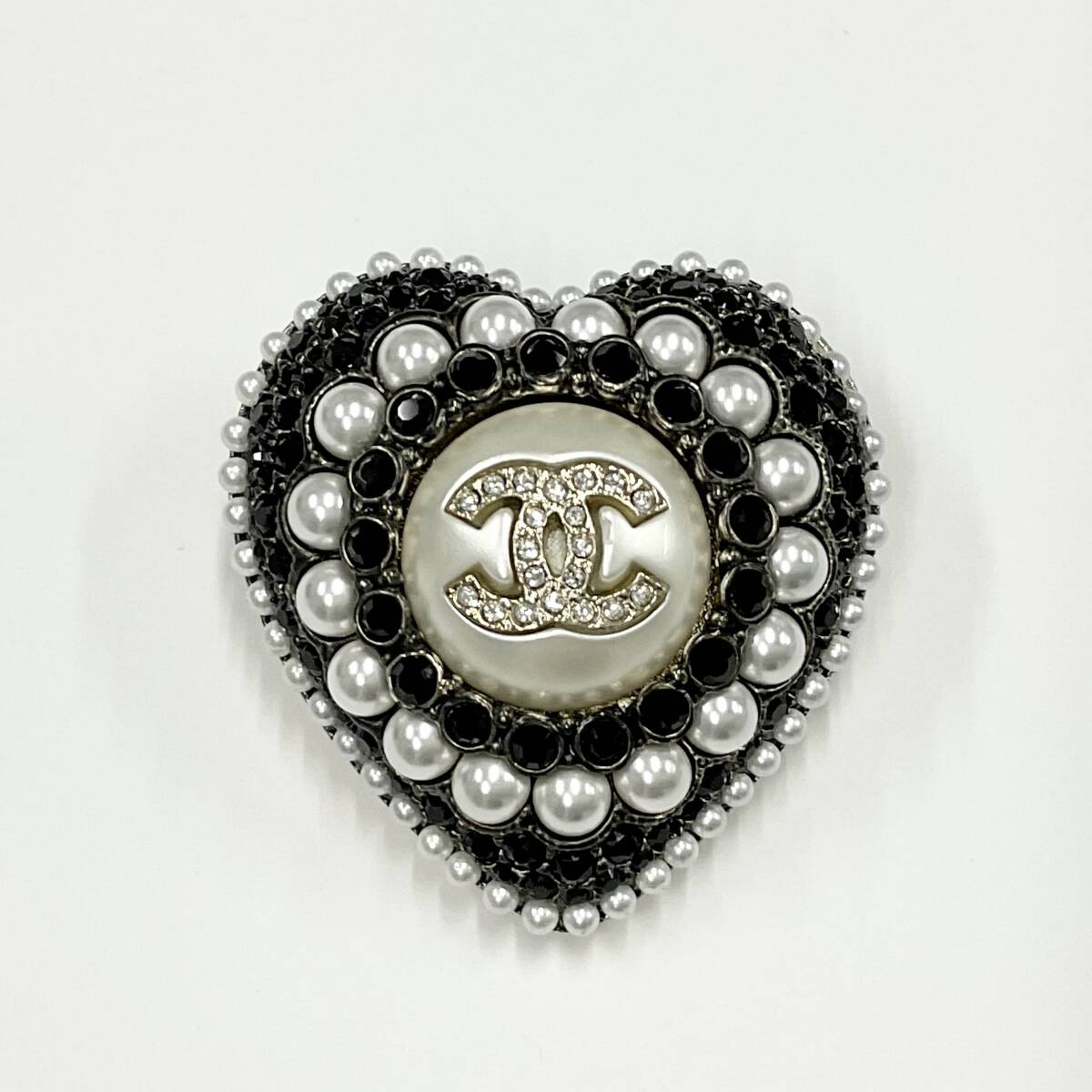シャネル ブローチ ココマーク パール ラインストーン ハート ゴールド ブラック