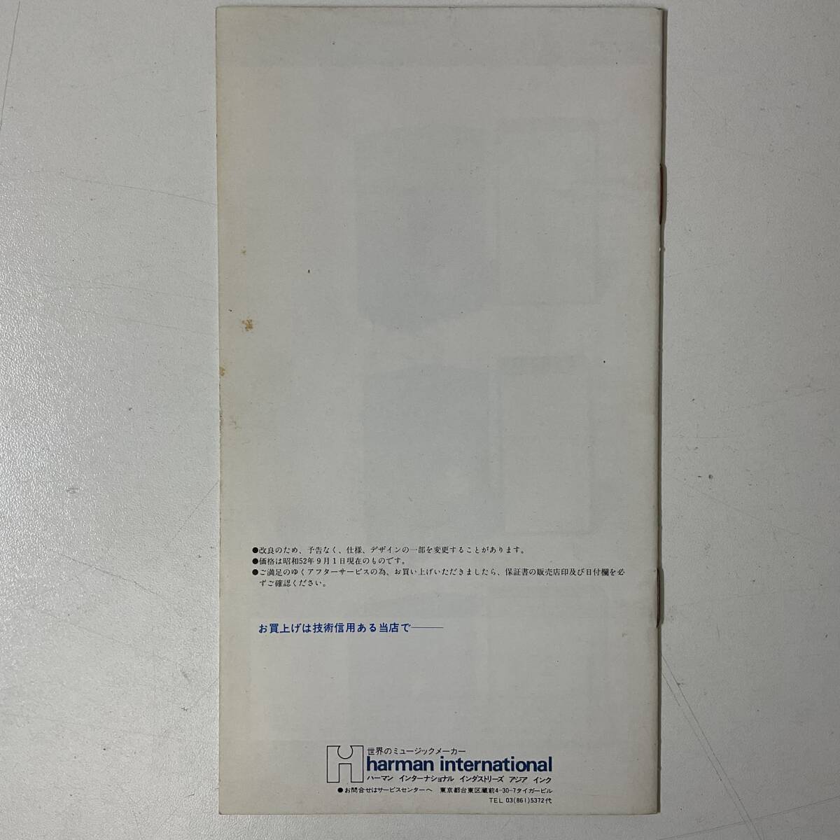 入手困難 ヴィンテージ オーディオ パンフレット ハーマン インターナショナル 総合カタログ 昭和52年 1977年 Harman Karon International