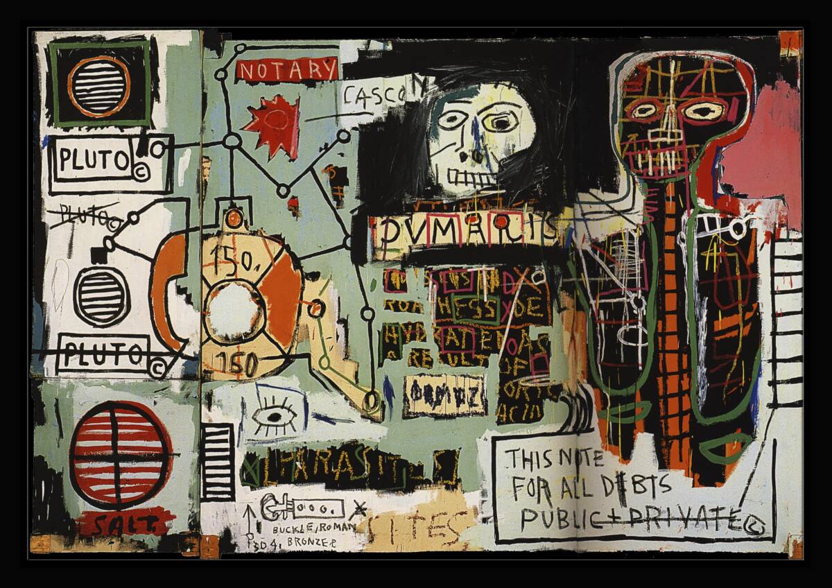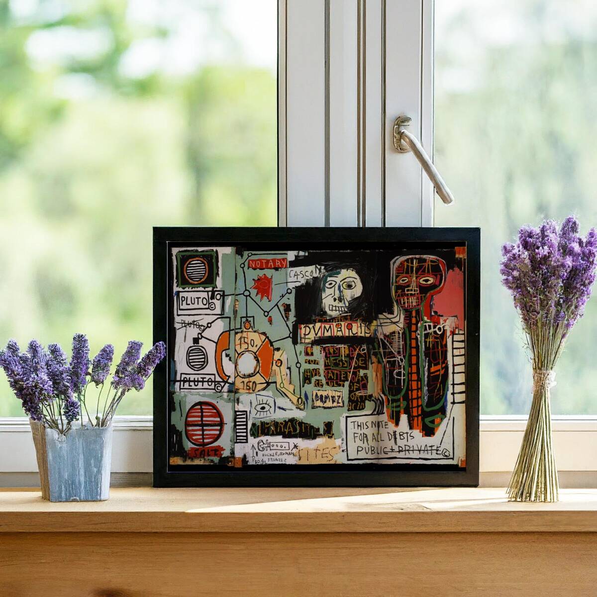 FBQ019-Basquiat フレーム付 A4サイズ マット無 ジャン=ミシェル・バスキア Jean Michel Basquiat グラフィティ・アート frame 枠有 模写