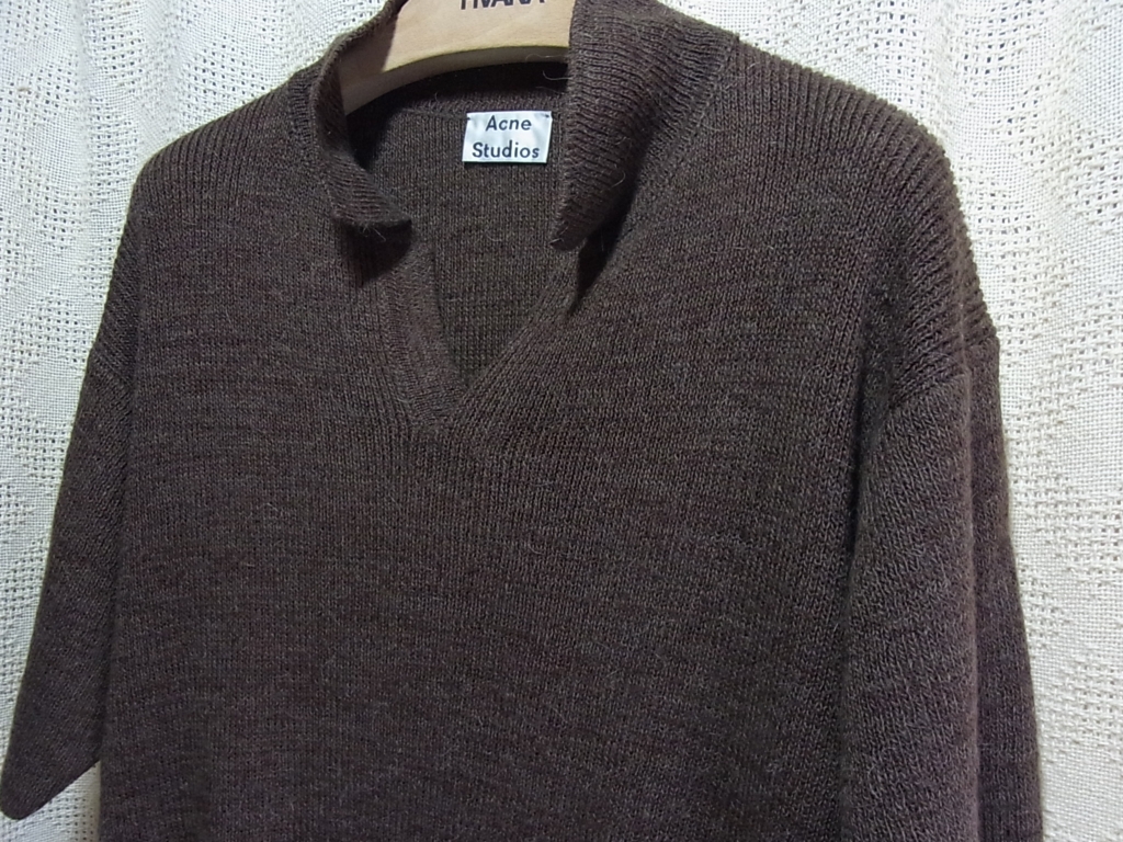 イタリア製 ACNE STUDIO アクネスタジオ 麻ウール混 半袖ニットブラウン 茶系 サイズXS/USEDです。