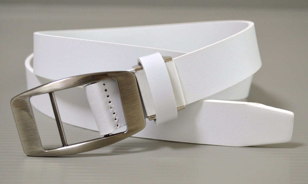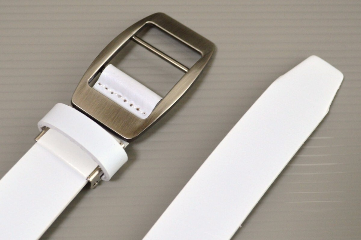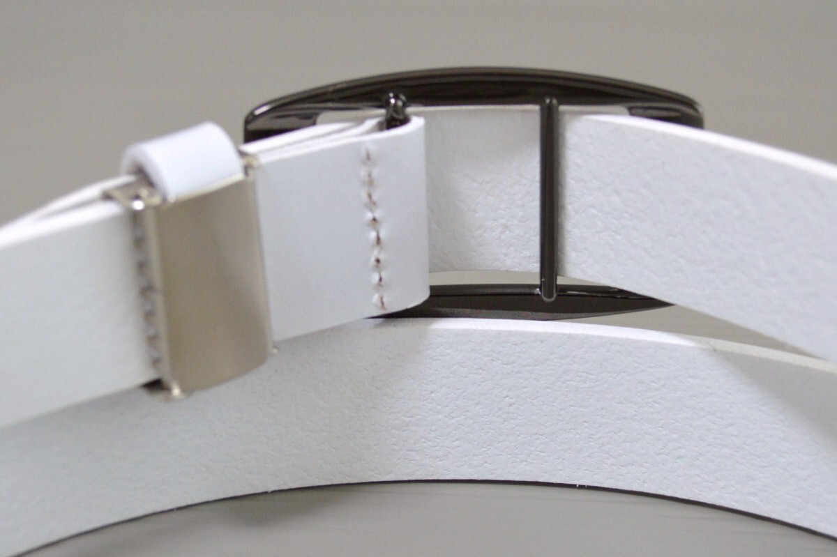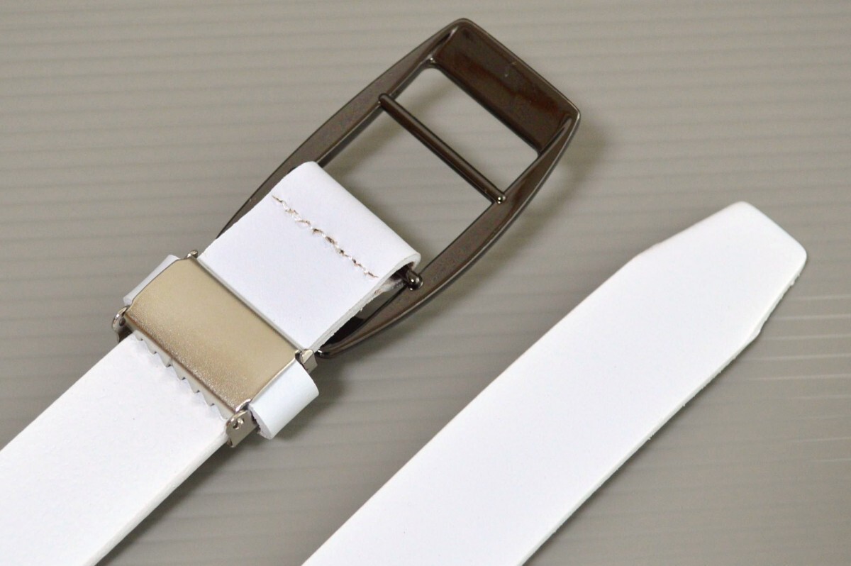 好評の38mmミリ帯幅に続く30ミリの細幅タイプです。通常のベルトでは難しかった ピンもベルト穴がなく帯をバックルに通してとめる斬新ユニークな作りとなっています。フリーサイズでの使用が可能で、ウエストが増しても問題ありません。シンプルなバックルを使用していますのでビジネス/カジュアル/スポーツにも兼用で使える万能ベルトです。革は厚みのあるしなやかな1枚の革を使用しています。