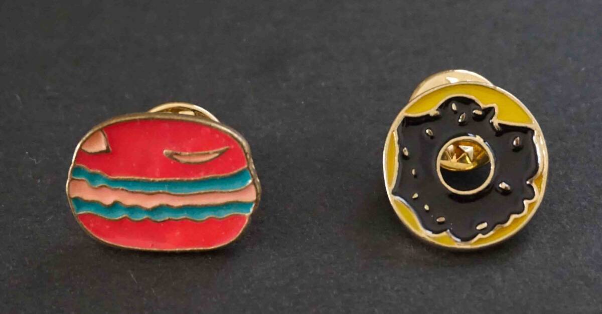 【2個セット お買い得《桃チョコ☆ドーナツセット》】新品 《ドーナツ》■*可愛い 金属 激渋 ピンバッジ バッチ■おしゃれ ファッション