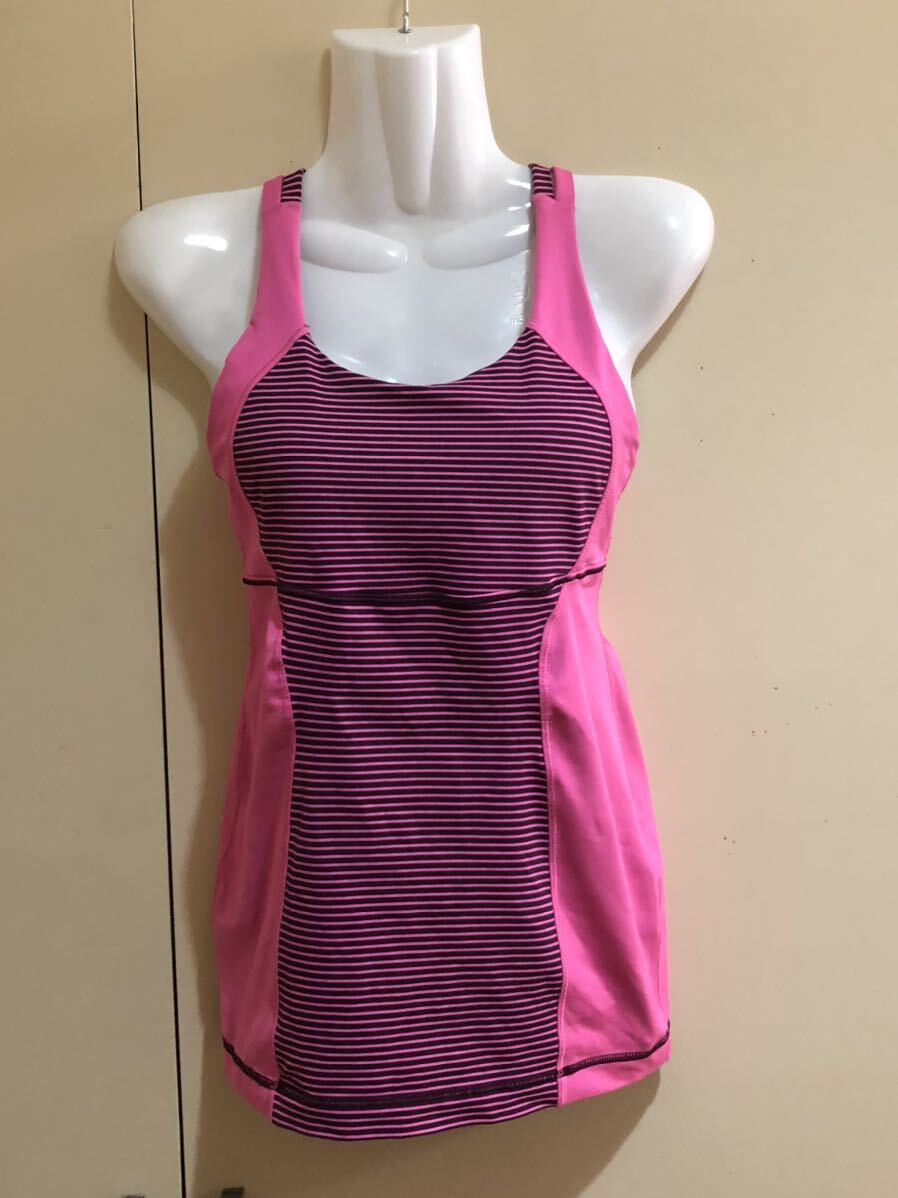 ルルレモン サイズ2 トップス タンク ピンク×ストライプ