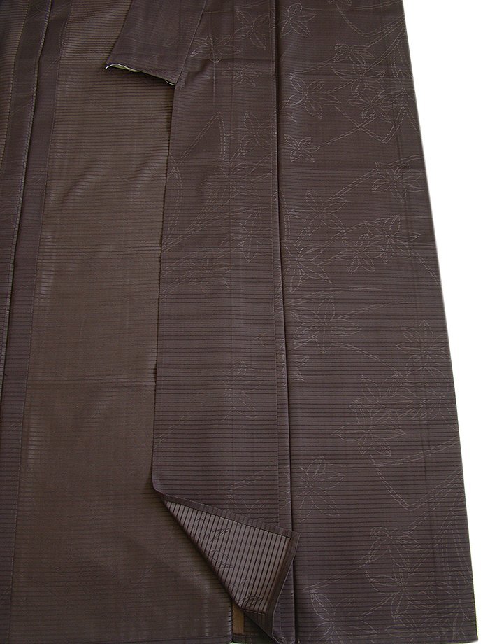 商品説明 | こちらのお品は夏物でございますので、7月~8月にお召頂ければと思います。 「絽」と言えば、紗と双璧を成す夏のお着物の生地で その最大の魅力は絶妙の透かし加減でございます。 清涼感溢れる地の風を通すしなやかさは夏に着物を着るという贅沢を 快適に愉しませてくれることでしょう。 着物には、大きく分けて「袷(あわせ)の着物」と「単衣(ひとえ)の着物」と「夏着物」があります。 反物(表地)を着物に仕立てるときに、裏地類をつけるものを袷の着物、 つけないものを単衣の着物と呼び、胴裏や八掛といった裏地がつかない一枚ものの着物です。 また裏地がないため、座る時などにヒップのラインが目立たないよう、 居敷当て(いしきあて)の生地をつけることもあります。 居敷当ては付いておりません。 とてもしなやかなさらっとした肌触りが極上の着心地を誘う滑らかな「駒絽」の生地は 渋い紅消鼠色地に花草柄の染柄が洒落感高い着物姿を演出しております。 |