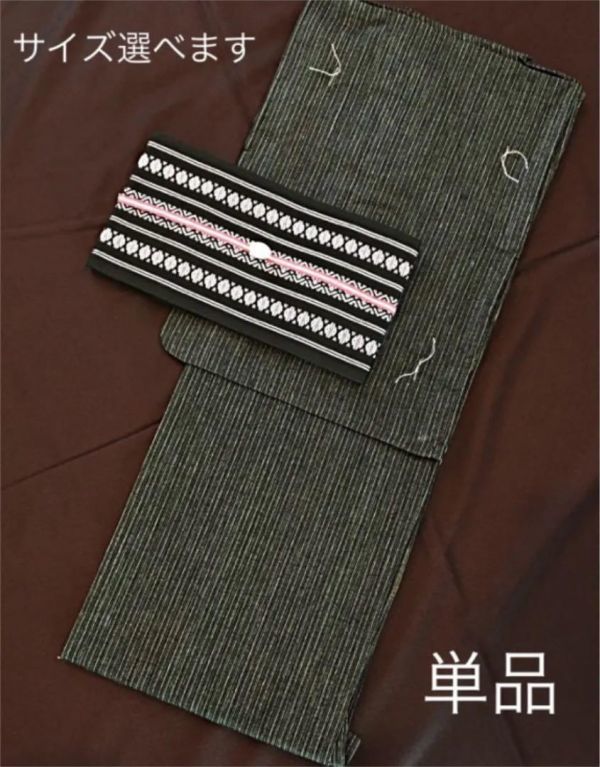 ■しじら織浴衣 黒に白縞 ★綿85%麻15% (麻が含まれているので清涼感があります。) ★しじら織り (軽くて、さらりとした肌触りが心地よく、見た目にも涼感が漂います。 綿のため吸湿性にも富み、夏衣料の素材として親しまれています。) 身丈約163cm 袖丈約49cm 裄丈約68cm フリーサイズ しじら織浴衣は長襦袢を合わせて夏着物として着られても素敵です^ - ^