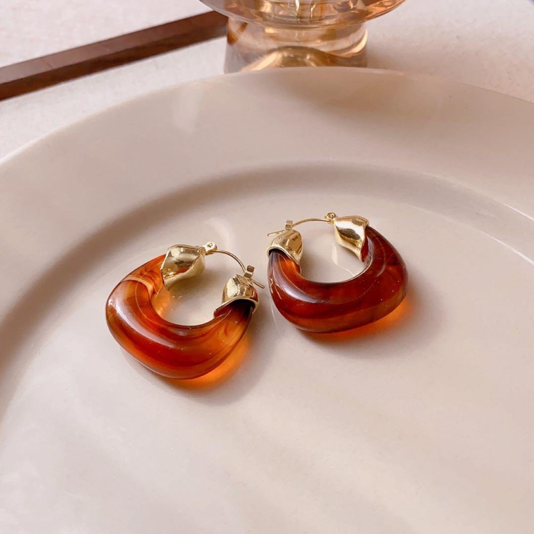 新品 薄いブラウン フープピアス レディースピアス 大人気 リングピアス