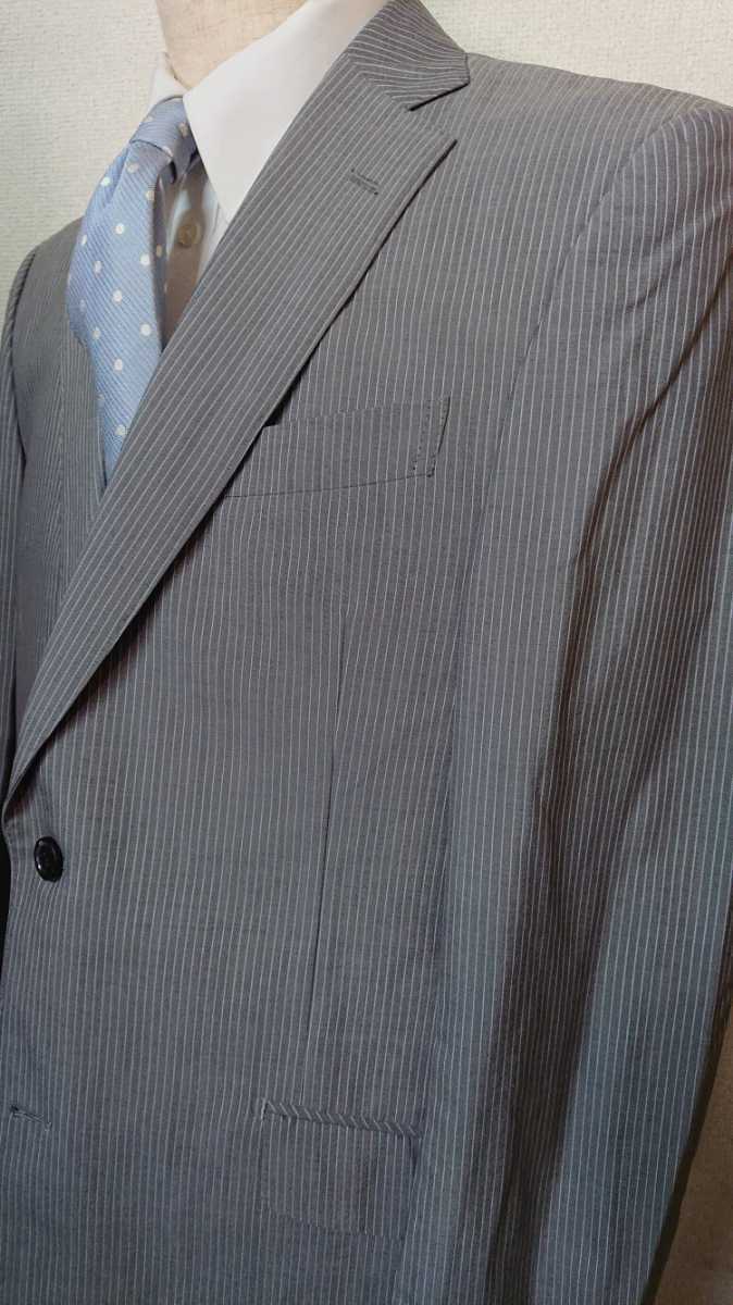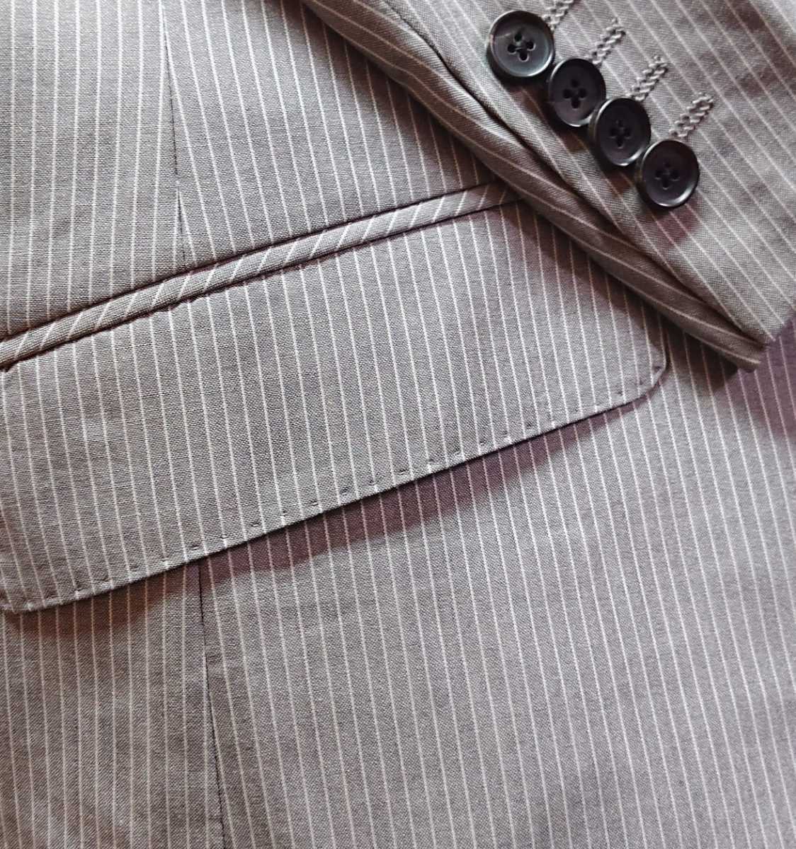 | サイズ⇒AB9(94) ジャケット⇒着丈78cm、肩幅50cm、チェスト118.5cm、袖丈65.5cm パンツ⇒ウエスト94cm、ワタリ幅37.2cm、裾幅22.7cm、股下98cm ※測り方によって誤差は生じます。 色⇒ライトグレー、ストライプ 表地⇒毛82%、絹11%、ポリエステル7% 裏地(背抜き)⇒ポリエステル100% 袖裏⇒キュプラ100% ベント⇒センターベント 台場⇒切台場 ステッチ⇒入り ボタン⇒本水牛、袖ボタン4個 タック⇒ノータック 商品状態⇒新品 着用季節⇒春夏物 R3-237251XA | |||