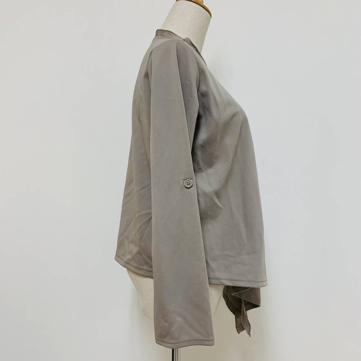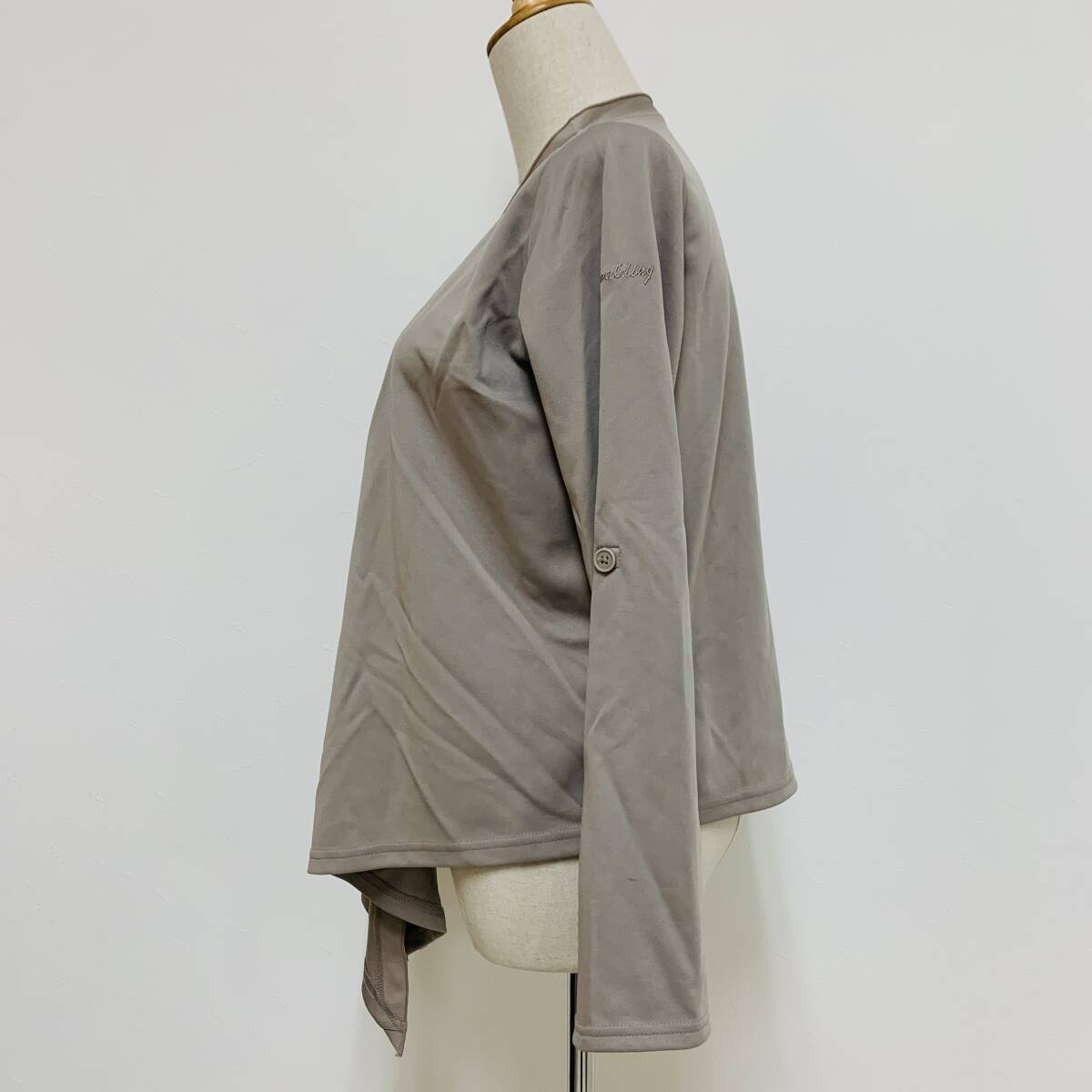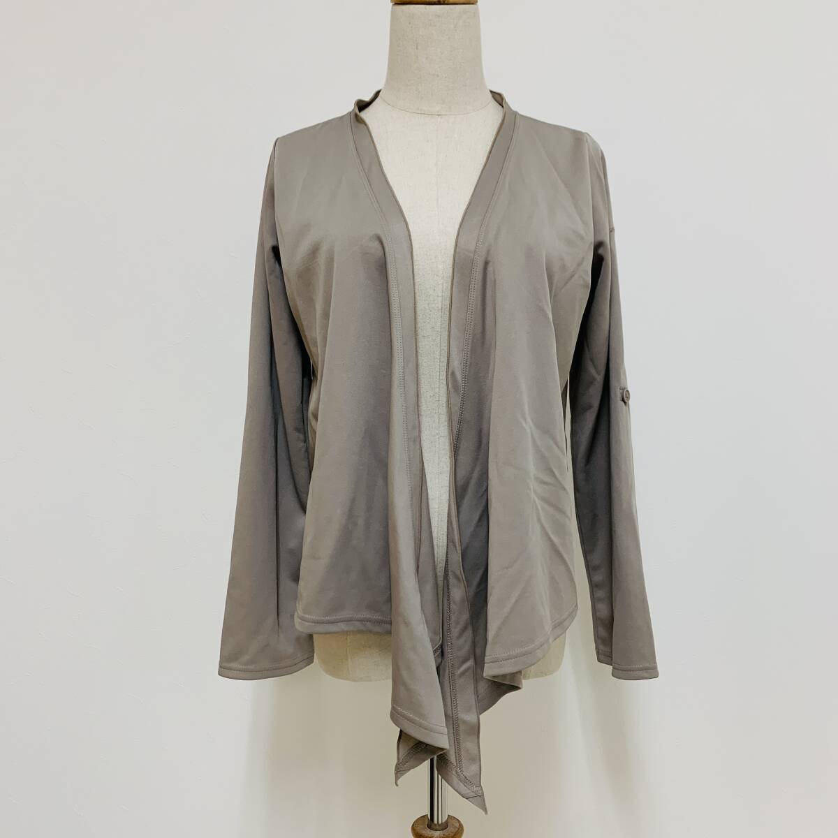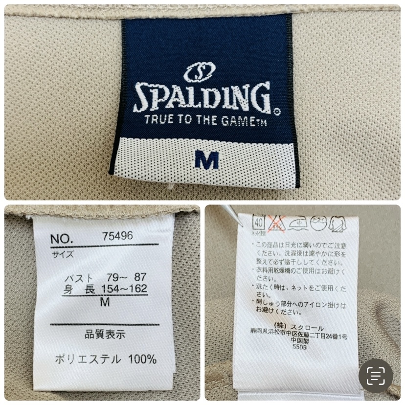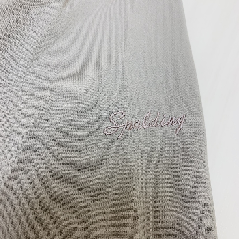 YH0362 SPALDING スパルディング レディース ロゴ刺繍 長袖 シャツ カーディガン ベージュ Mサイズ 薄手 オフィススタイル 万能 USED 古着