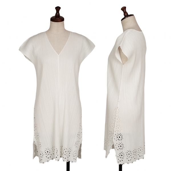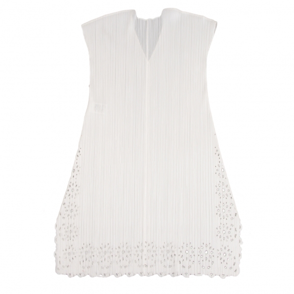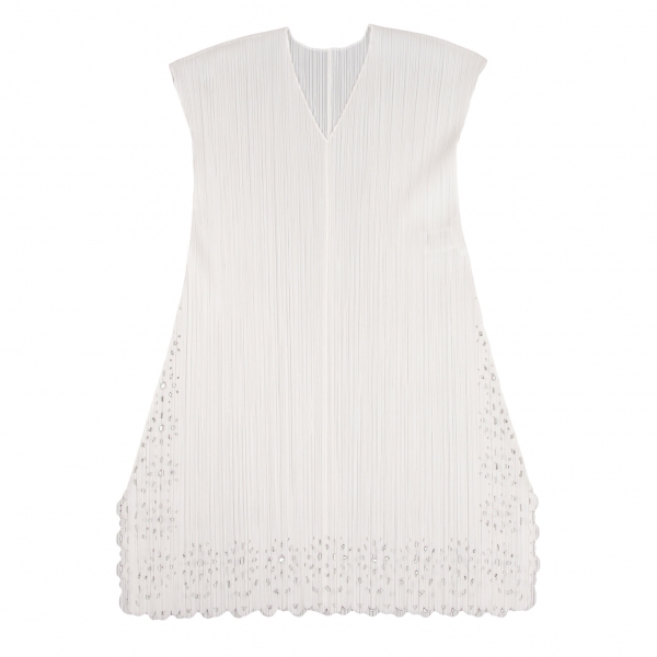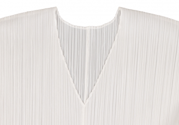 プリーツプリーズPLEATS PLEASE プリーツカッティングデザインVネックノースリーブチュニック オフホワイト3 |