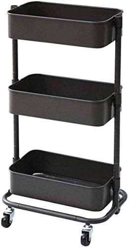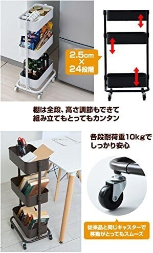 [山善] キッチンワゴン スリム 高さ調節可能 全体耐荷重30kg メッシュタイプ キャスター付き 幅39.5×奥行27.5×高さ77cm バスケットトローリー 組立品 ダークブラウン LSBT-3(DBR)