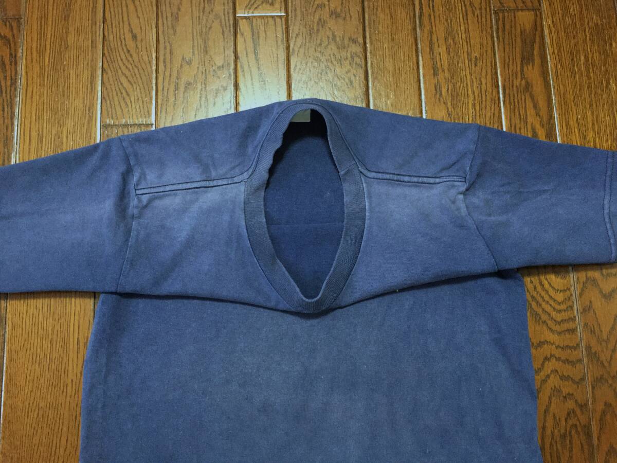実寸で肩幅(背面直線)43.2cm、着丈(背面首リブの付け根~裾)65.5 cm、身幅(脇下~脇下)47.2cm、袖丈(肩~袖先)18.2cmほどになります。