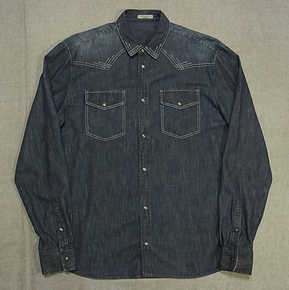 サイズ42 BOTTEGA VENETA ボッテガ・ヴェネタ デニムシャツ シャツジャケット 加工 ダークネイビー MADE IN ITALY