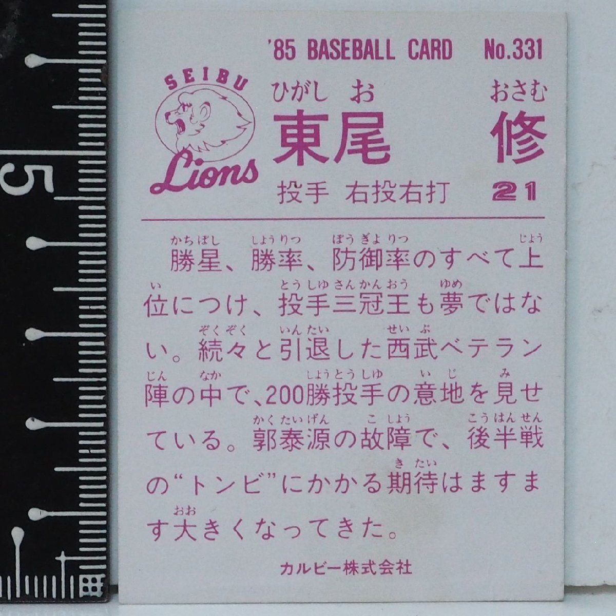 85年 カルビー プロ野球カード No.331【東尾 修 投手 西武ライオンズ】昭和60年 1985年 当時物 Calbee おまけ 食玩 BASEBALL【中古】