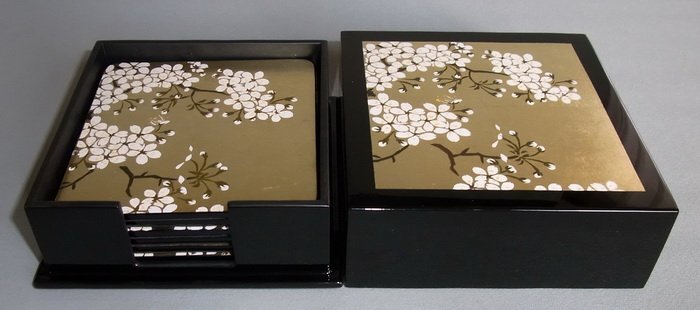 漆(うるし)絵でデザインした特製コースターです。