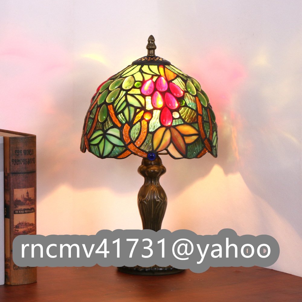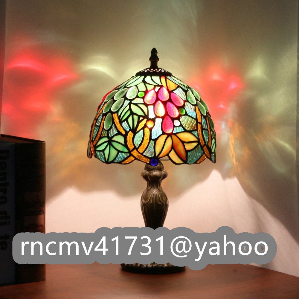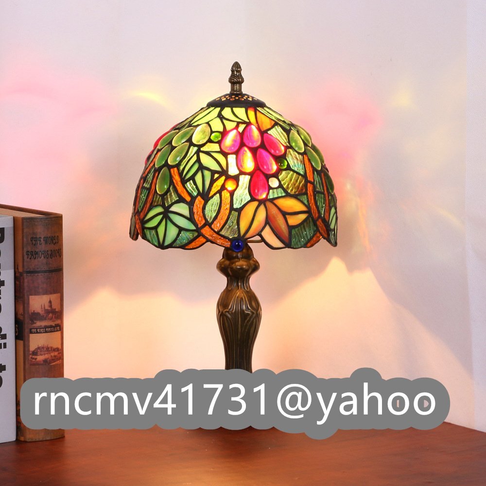 「81SHOP」 デスクライト ステンドランプ ステンドグラス グレープ花柄 レトロな雰囲気 ティファニー技法 室内装飾 照明 ランプ