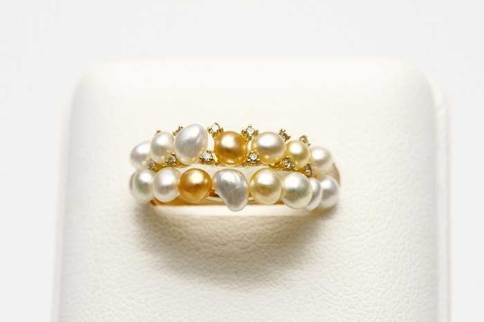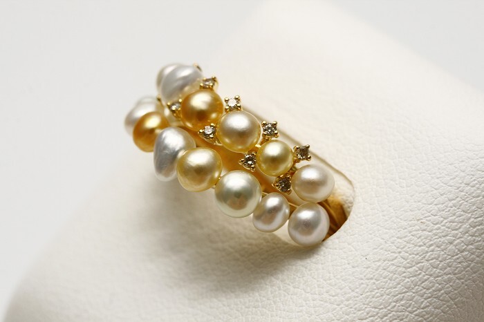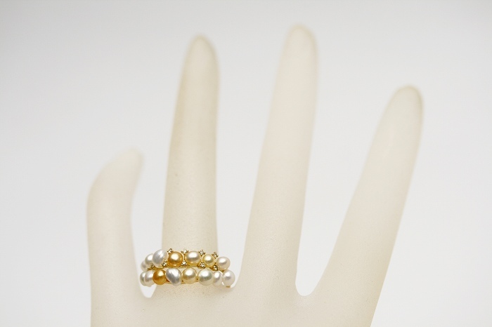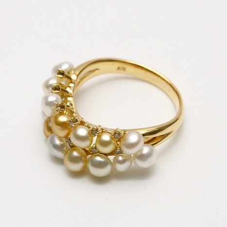 様々な色合いの南洋ケシを16個あしらったパールリングです。 鮮やかなマルチカラーの色合いに仕上がっています。 ケシ独特の個性的なフォルムも魅力的で 身に着けているとついつい手元を眺める時間が増えそうです。 同じものは二度と出来ない1点限りのお品となります。 珠の間に輝く12石のダイヤも素敵なアクセントになっています。 手元で小ぶりなパールがキラキラ輝きます。 | |