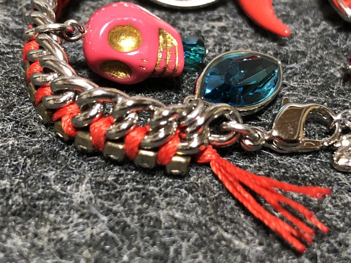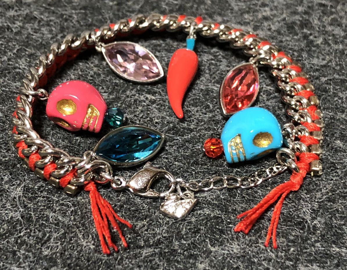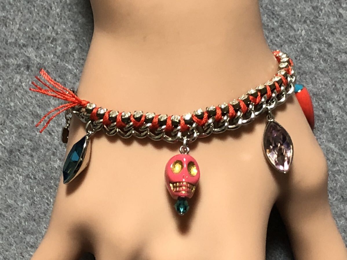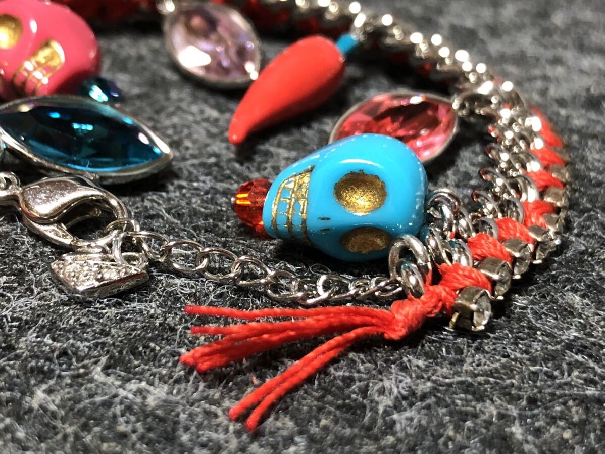 美品 スワロフスキー ブレスレット ストーン スカル 唐辛子 紐