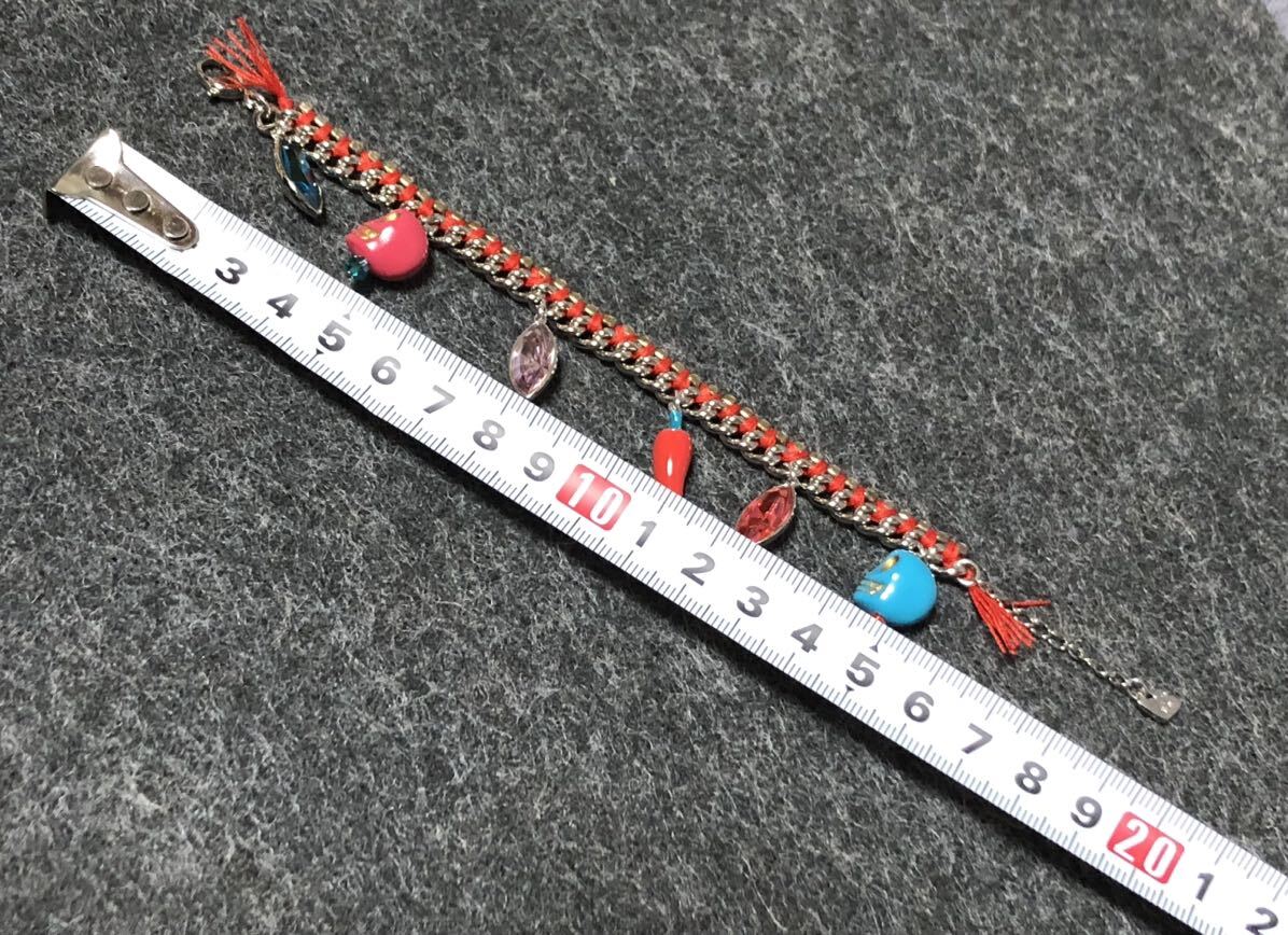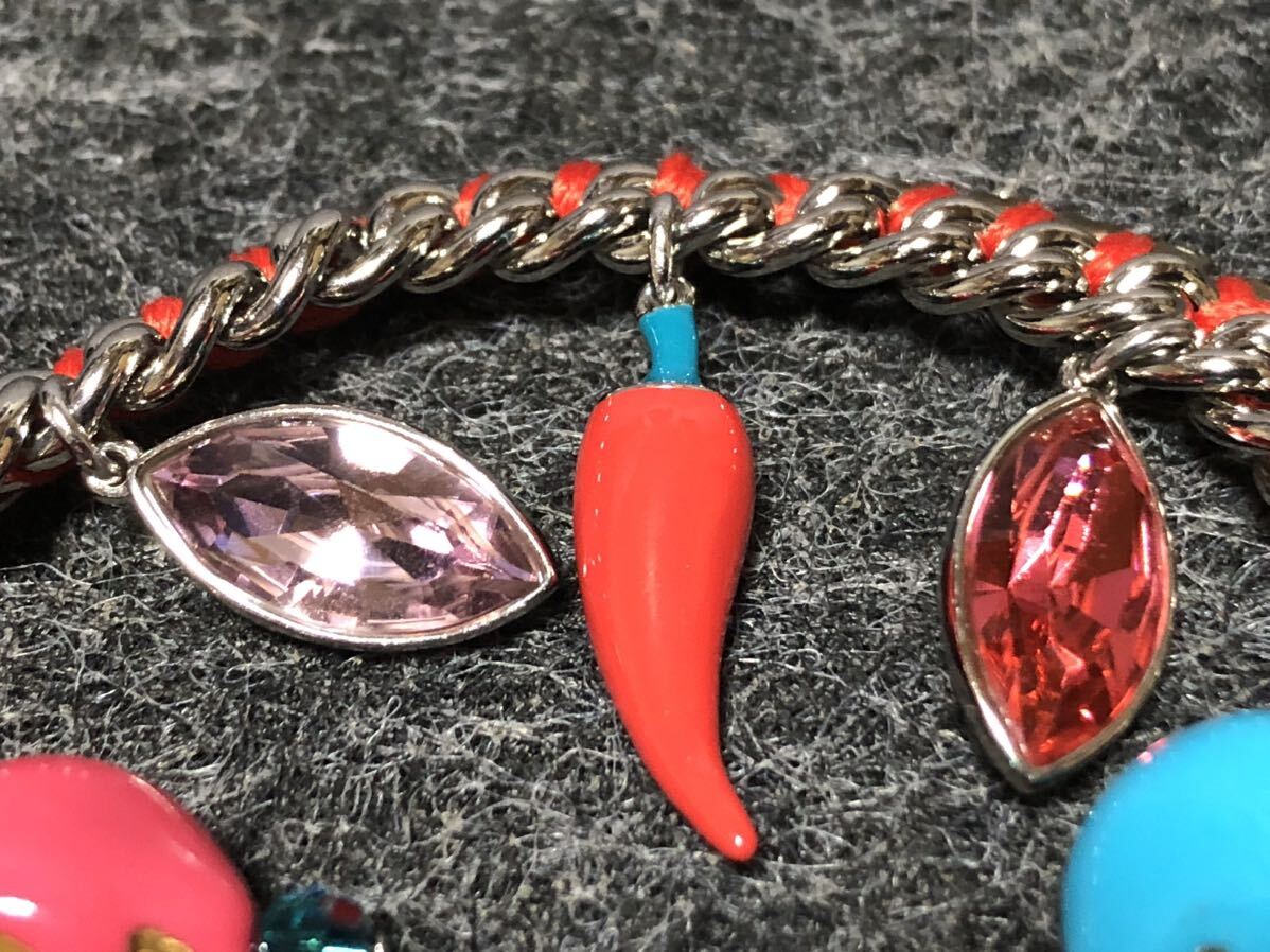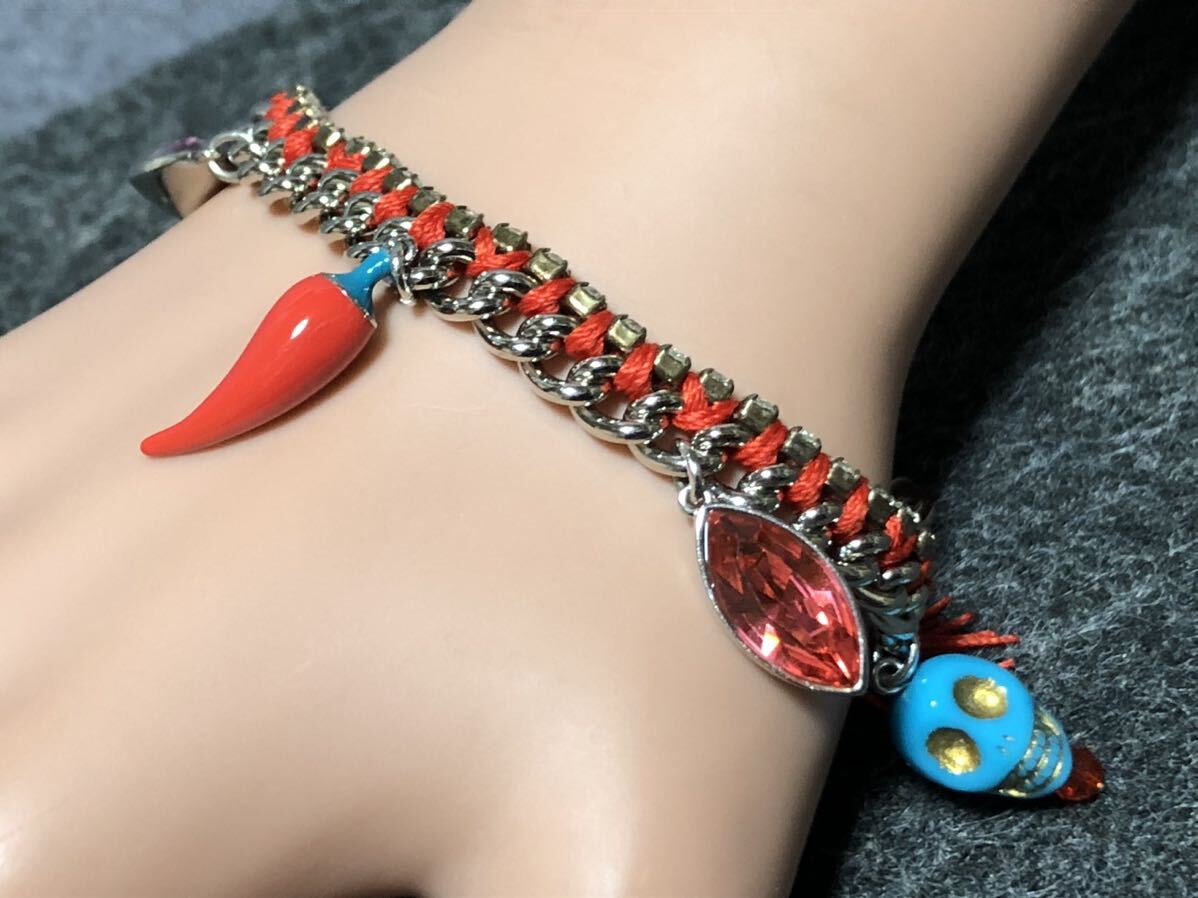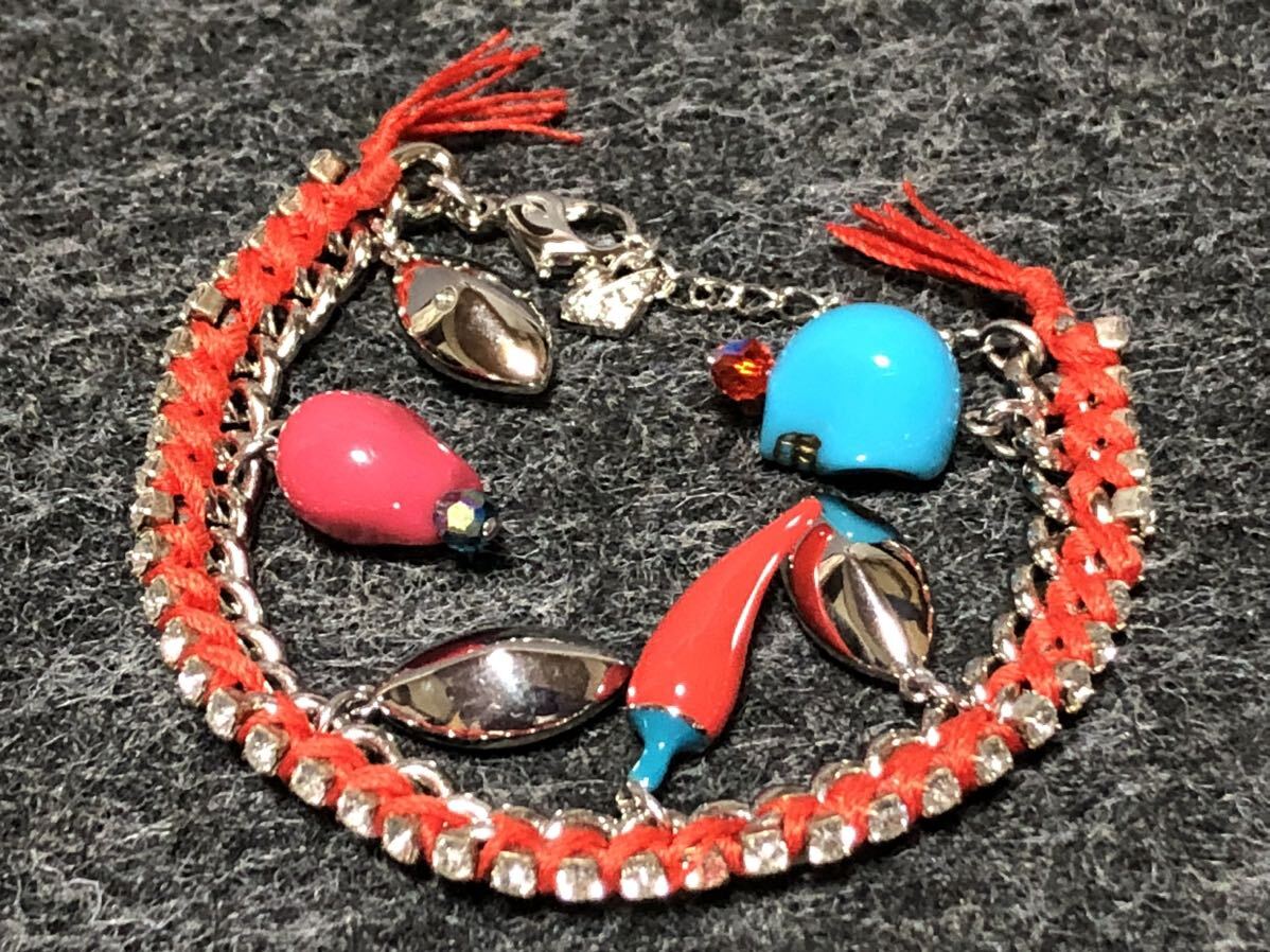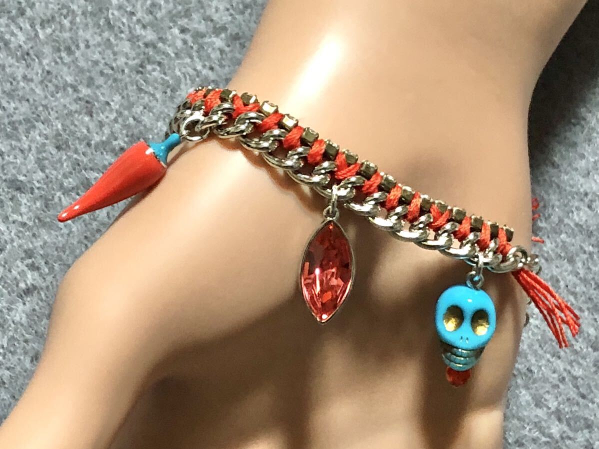 美品 スワロフスキー ブレスレット ストーン スカル 唐辛子 紐