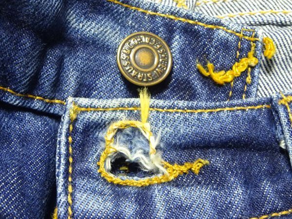 状態 それなりの着用感と全体に色落ちがあり、フロントボタンホールにほつれ破れ、紙パッチに破れ、股下に擦れはありますが、着用に支障をきたすほどの汚れやダメージなどはなく、ヴィンテージ古着に慣れた方でしたらまだ問題なくご着用頂けると思います。
