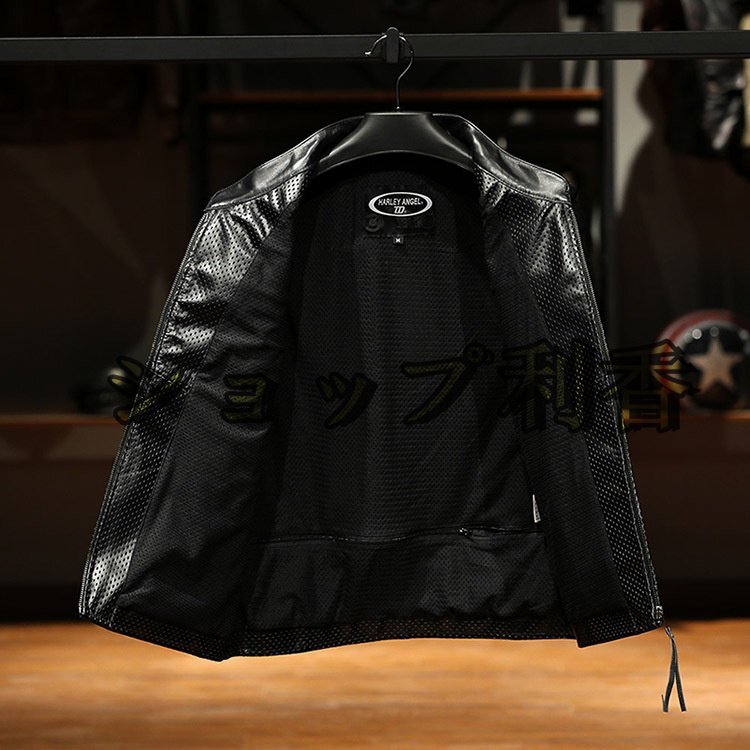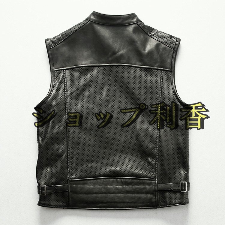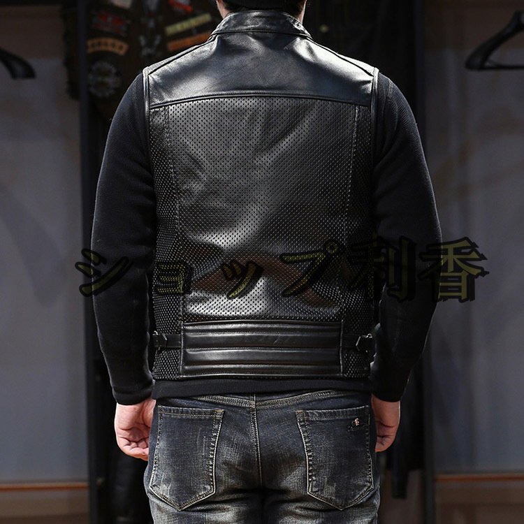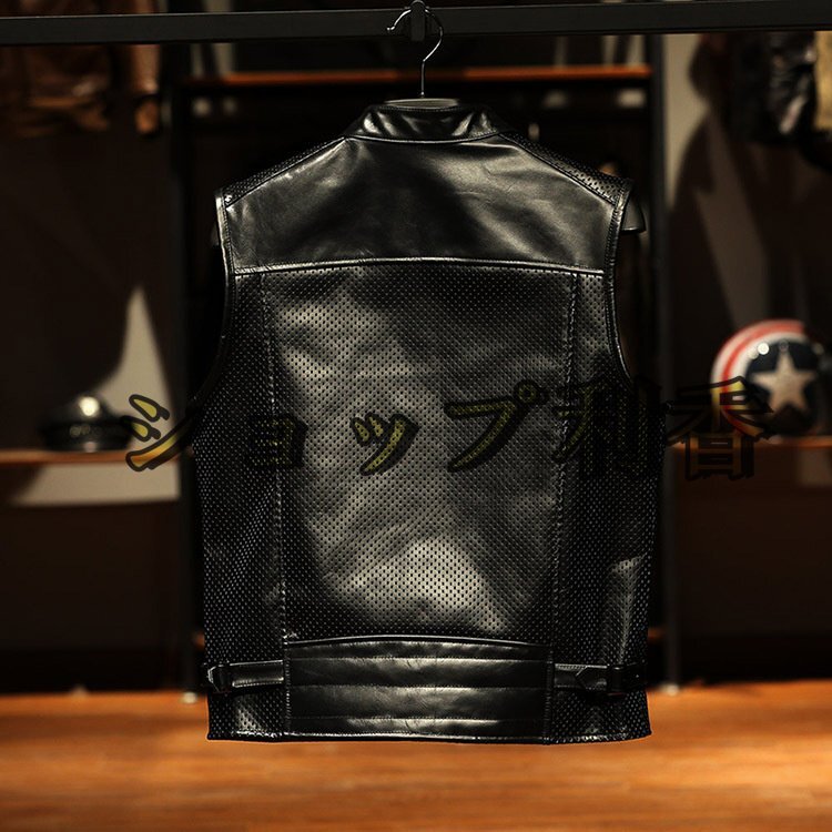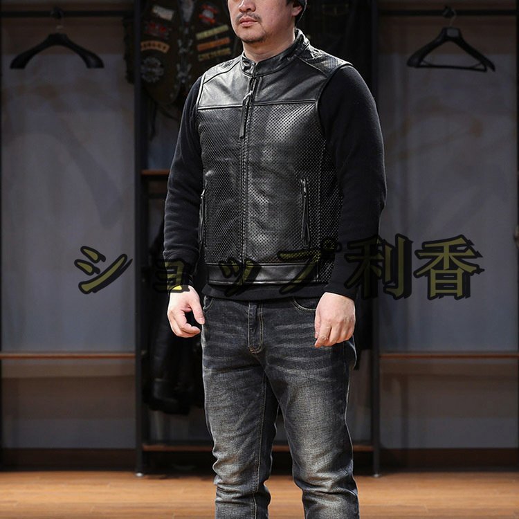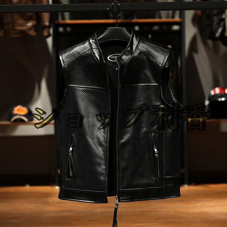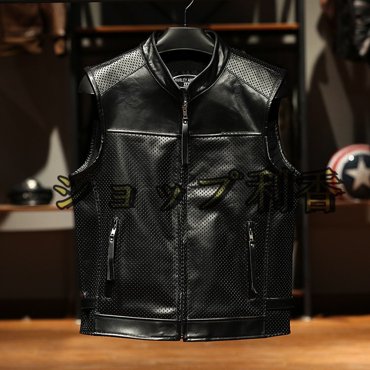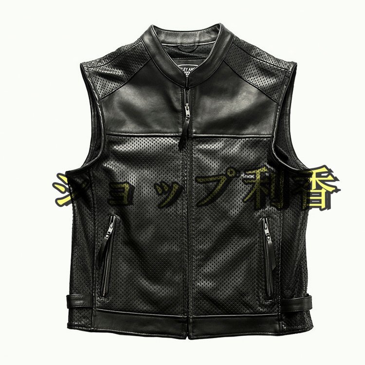 メンズレザー ハレー ジャーキン ベスト 本革 牛革 メッシュ バイクジャケット ライダース XS~3XL 黒