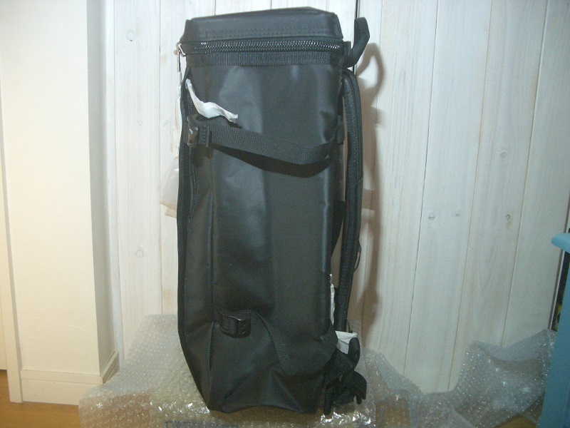 転写プリントのヒューズボックス(リュック)です。ボックス型の形状で大きな開口部。