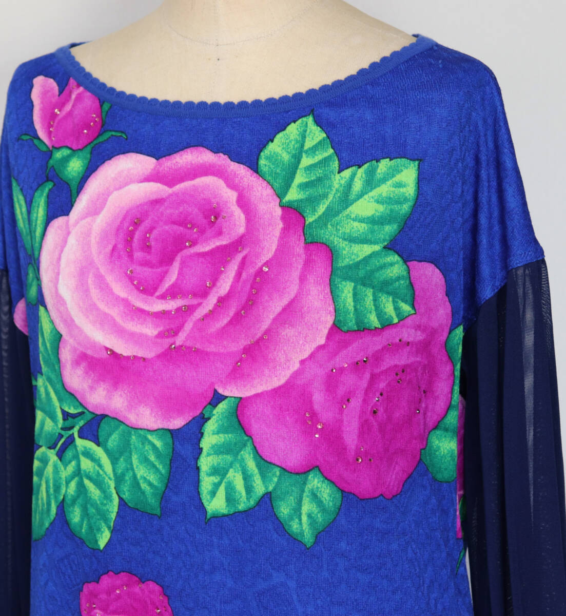 | 39,600円新品タグ付き【伊太利屋 GKITALIYA】綺麗な薔薇にストーン 袖シアー カットソー 9号 v4759-0513 |