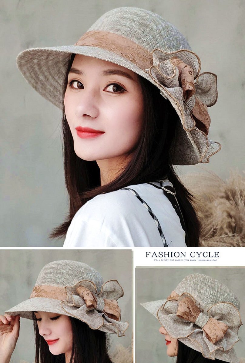 綿麻 帽子 レディース 紫外線対策 春夏 大人 帽子 リボン付き 日焼け 小顔効果 日除け ゴルフ 旅行 通勤 大人可愛い 灰色