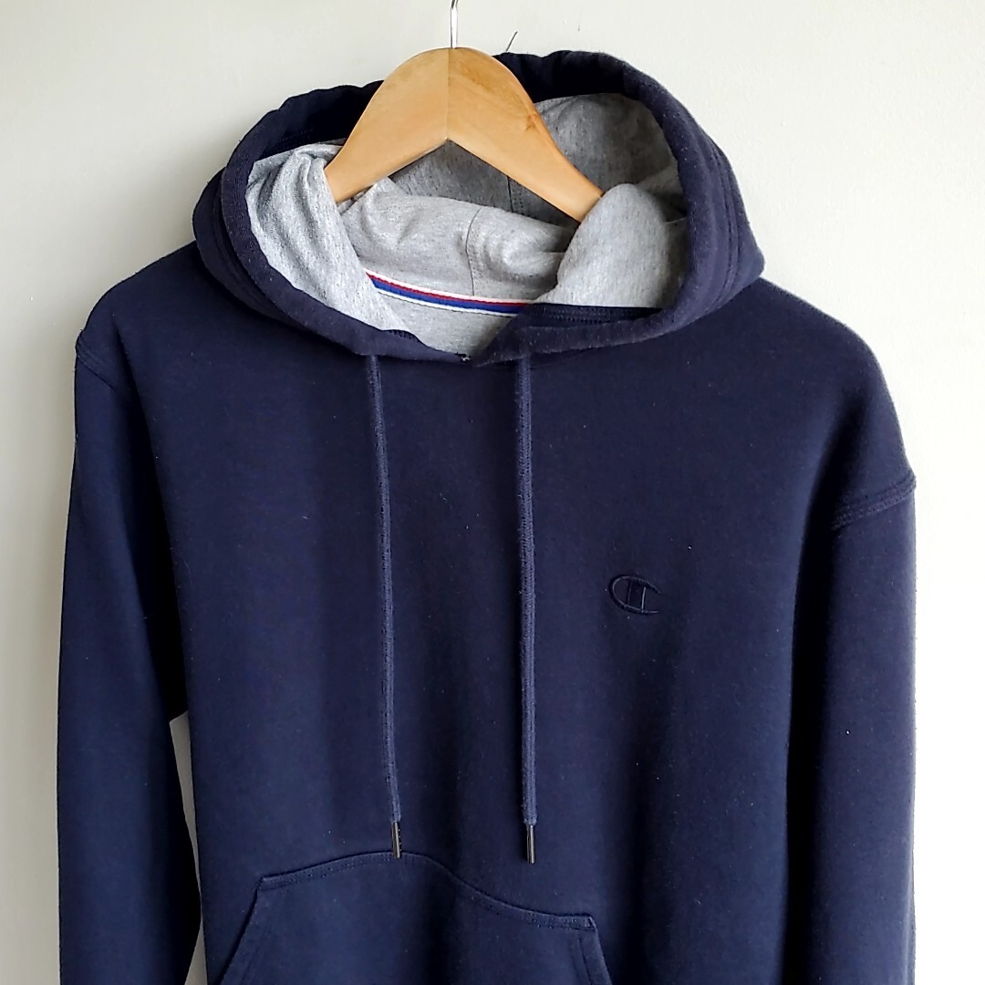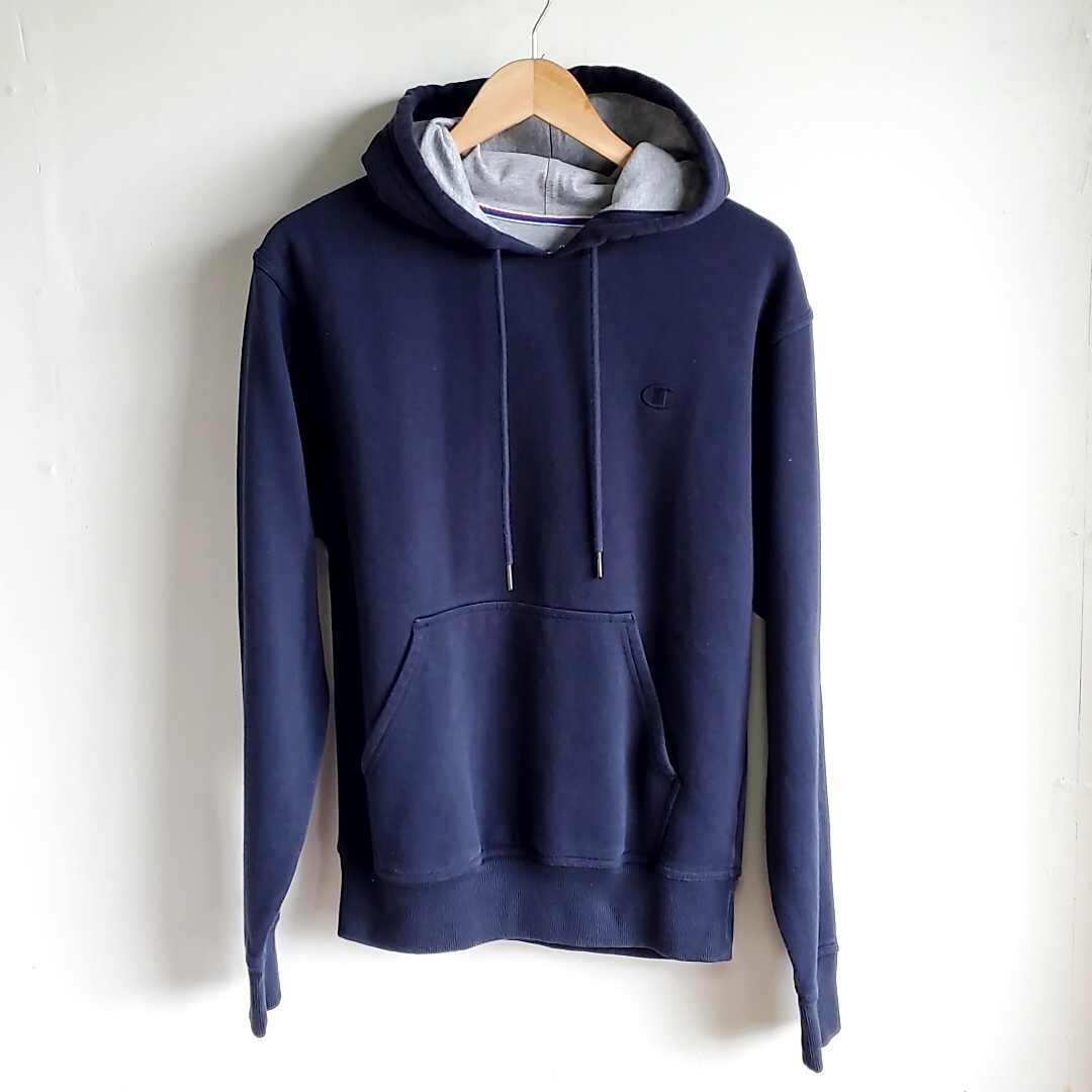 B43◆チャンピオン CHAMPION プルオーバー パーカー size USA:S ASIA:L 紺?黒? 中古 古着 USED AUTHENTIC ATHLETICWEAR